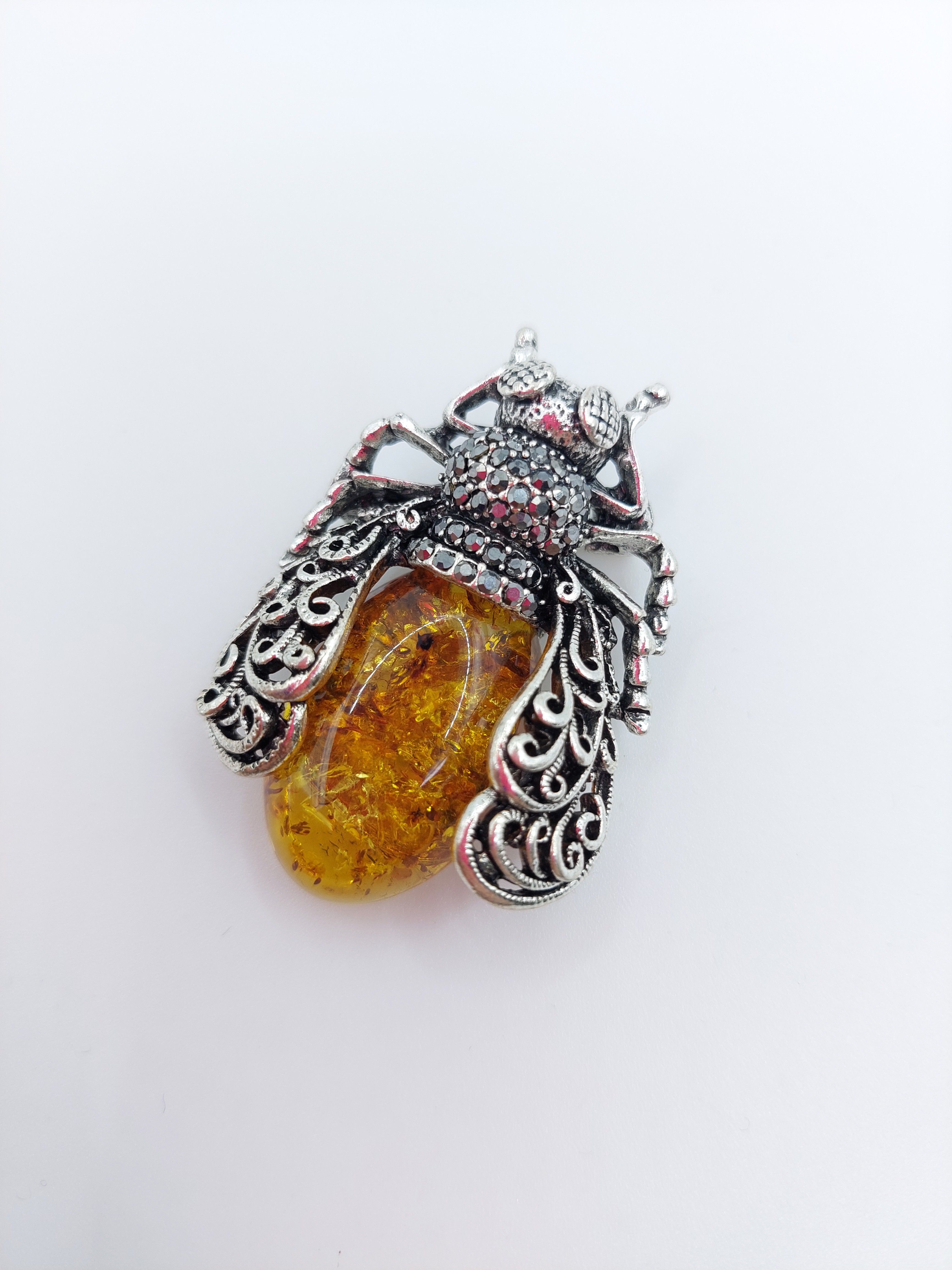 Состав: металлическая основа , кабошон из янтаря .
