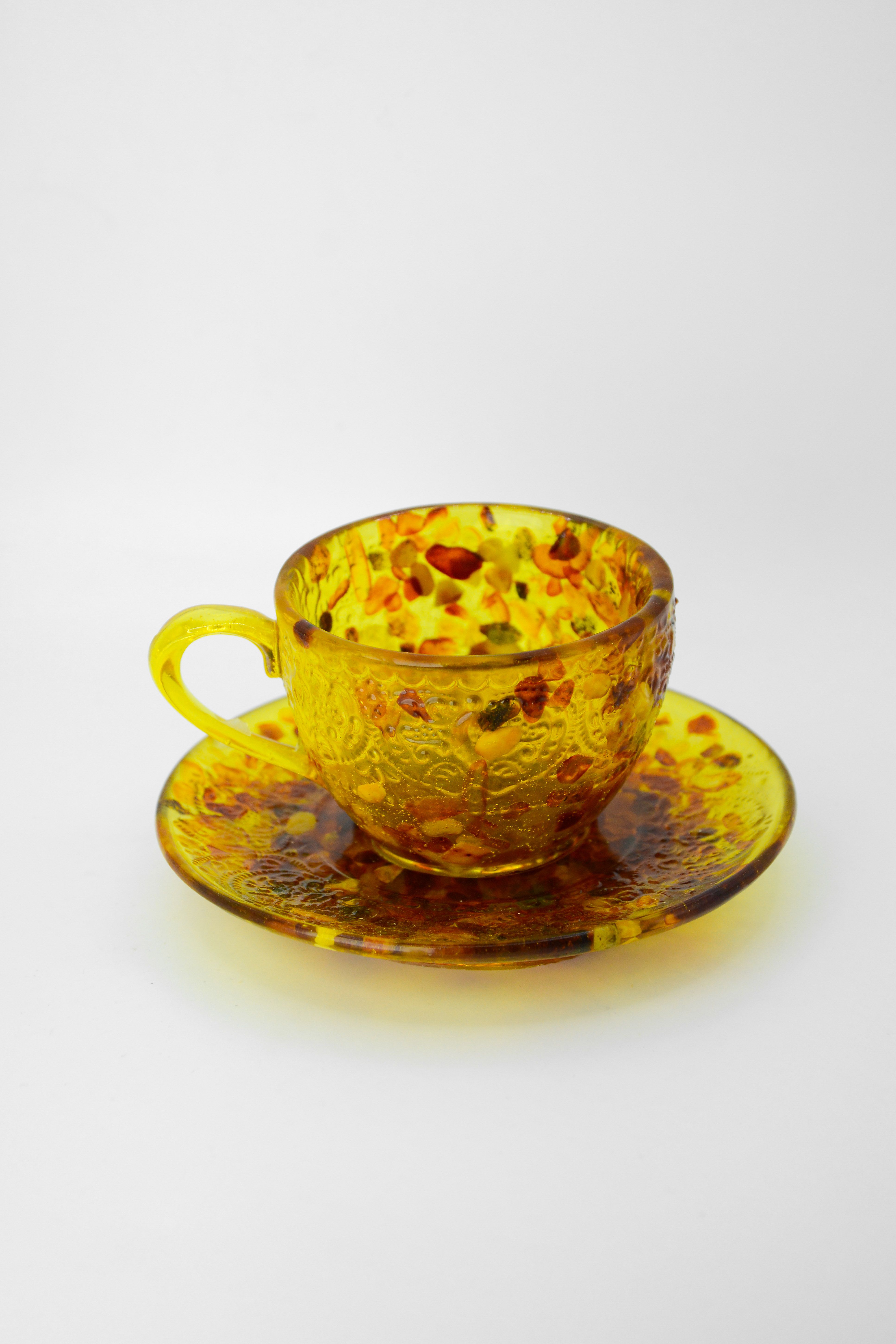 Размер чашки 9*4,5 см , блюдце 11,5*1,5 см , общая масса 150 г .