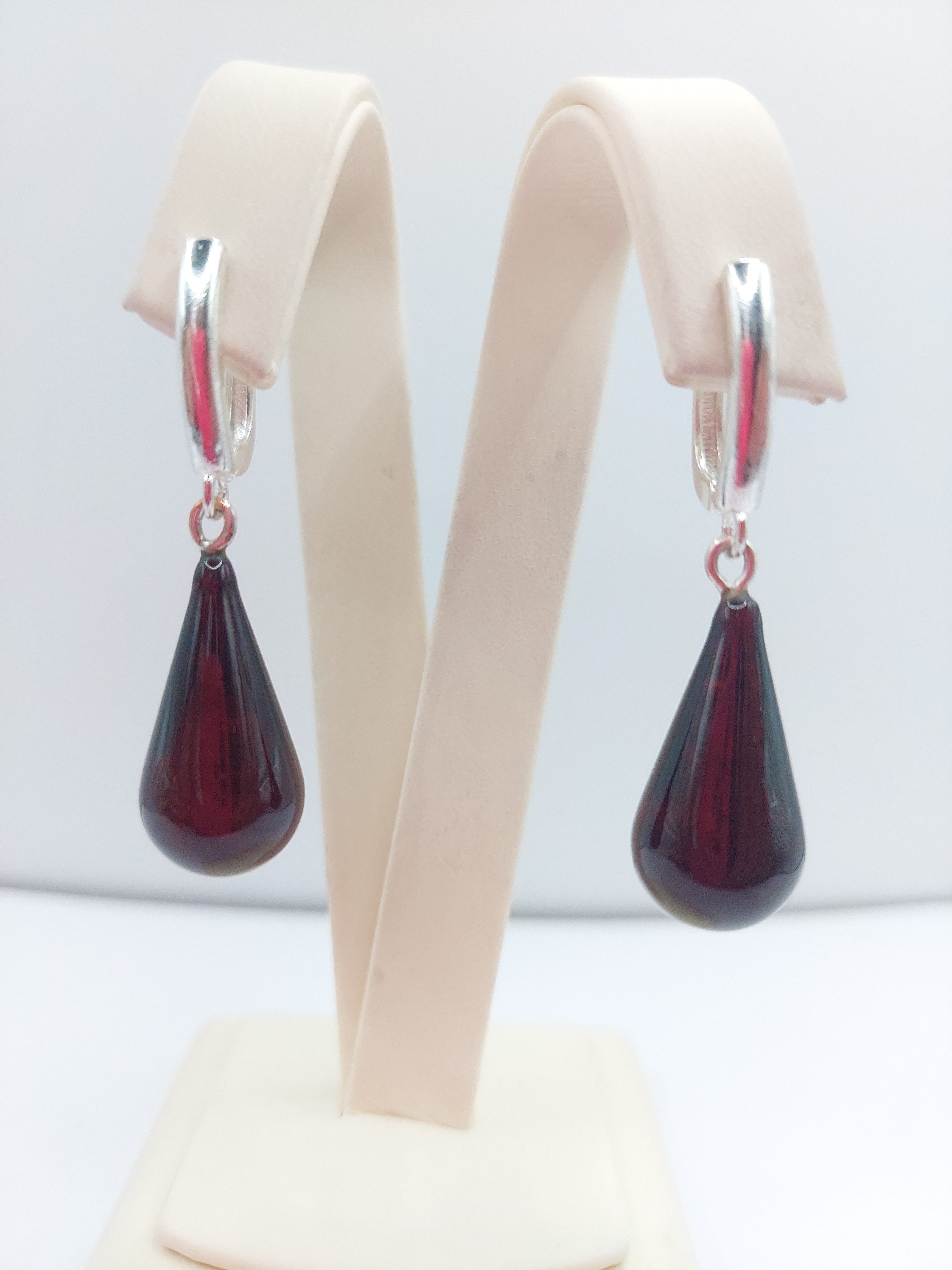 Серьги из посеребренного покрытия с кабошоном из янтаря .