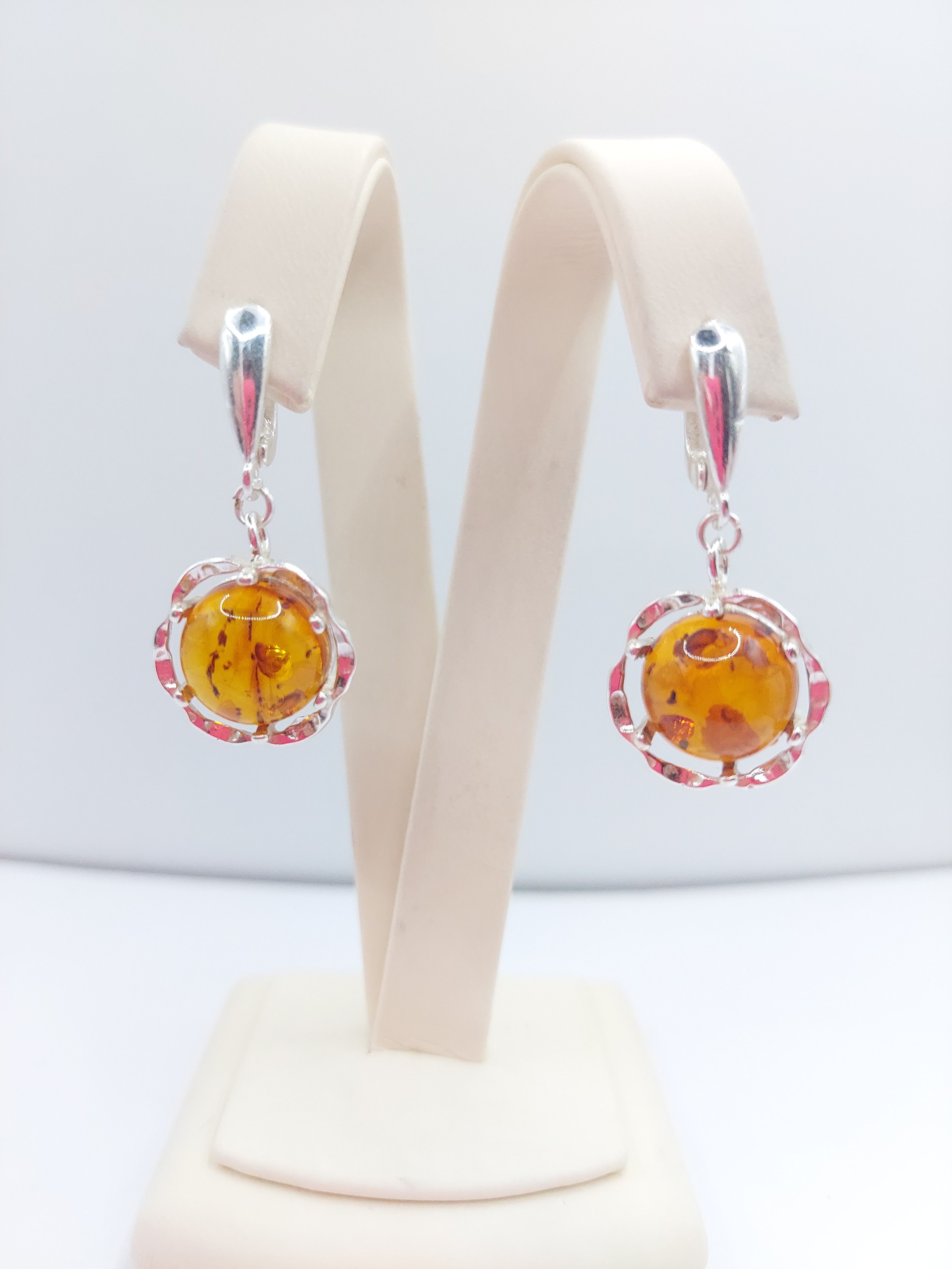 Серьги из посеребренного покрытия с кабошоном из янтаря .