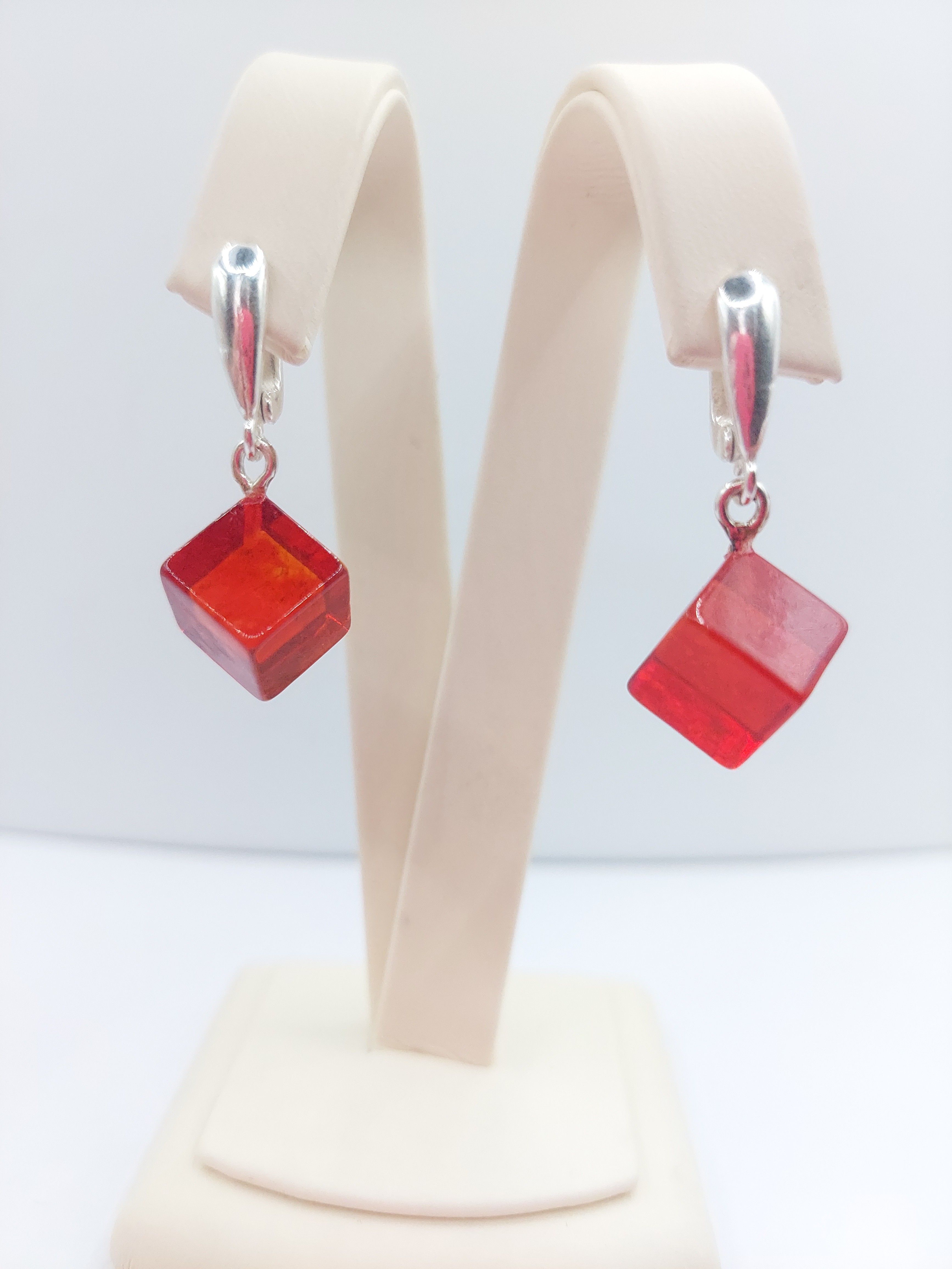Серьги из посеребренного покрытия и окрашенного натурального янтаря .