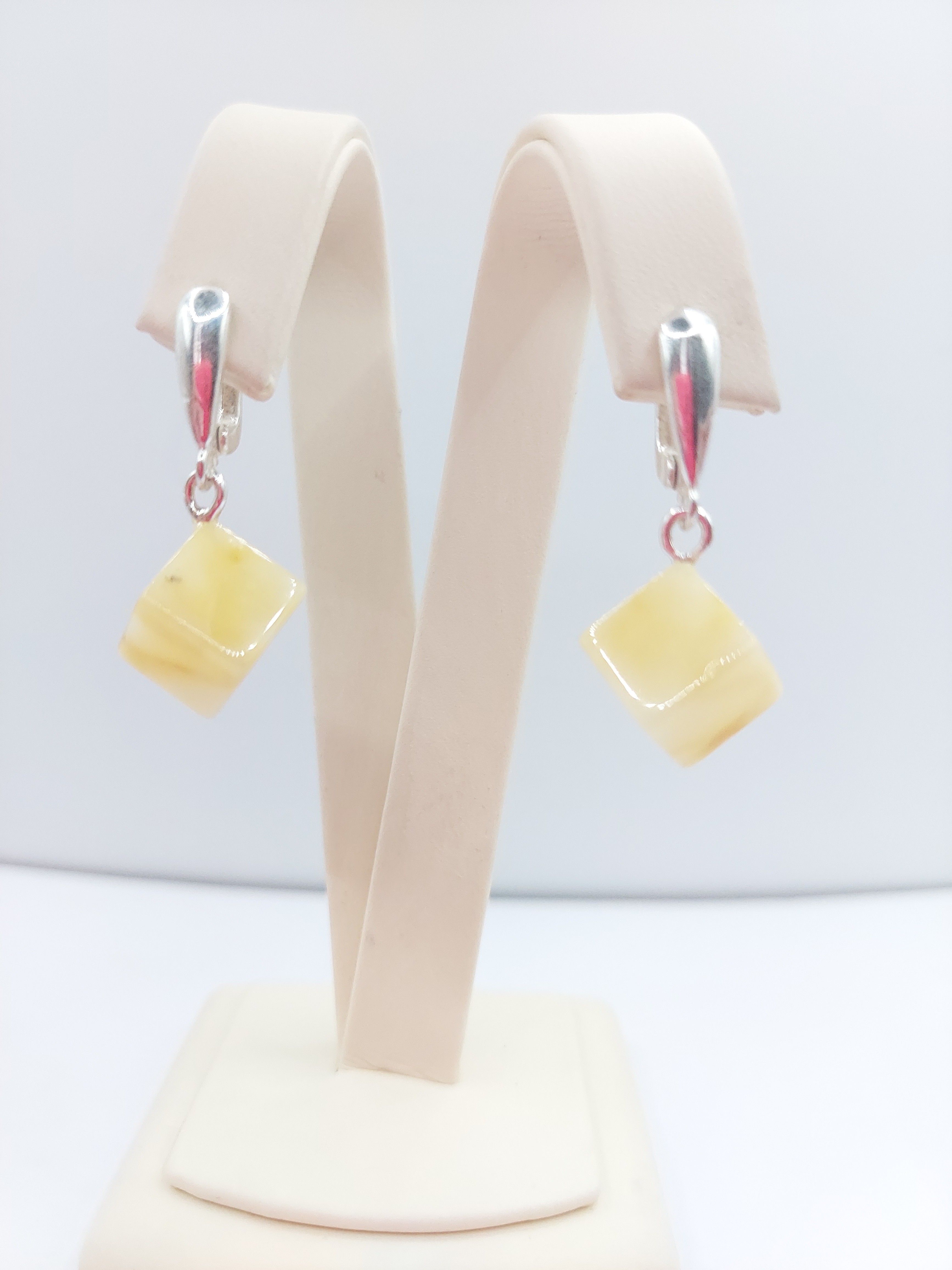 Серьги из посеребренного покрытия с белым янтарем .