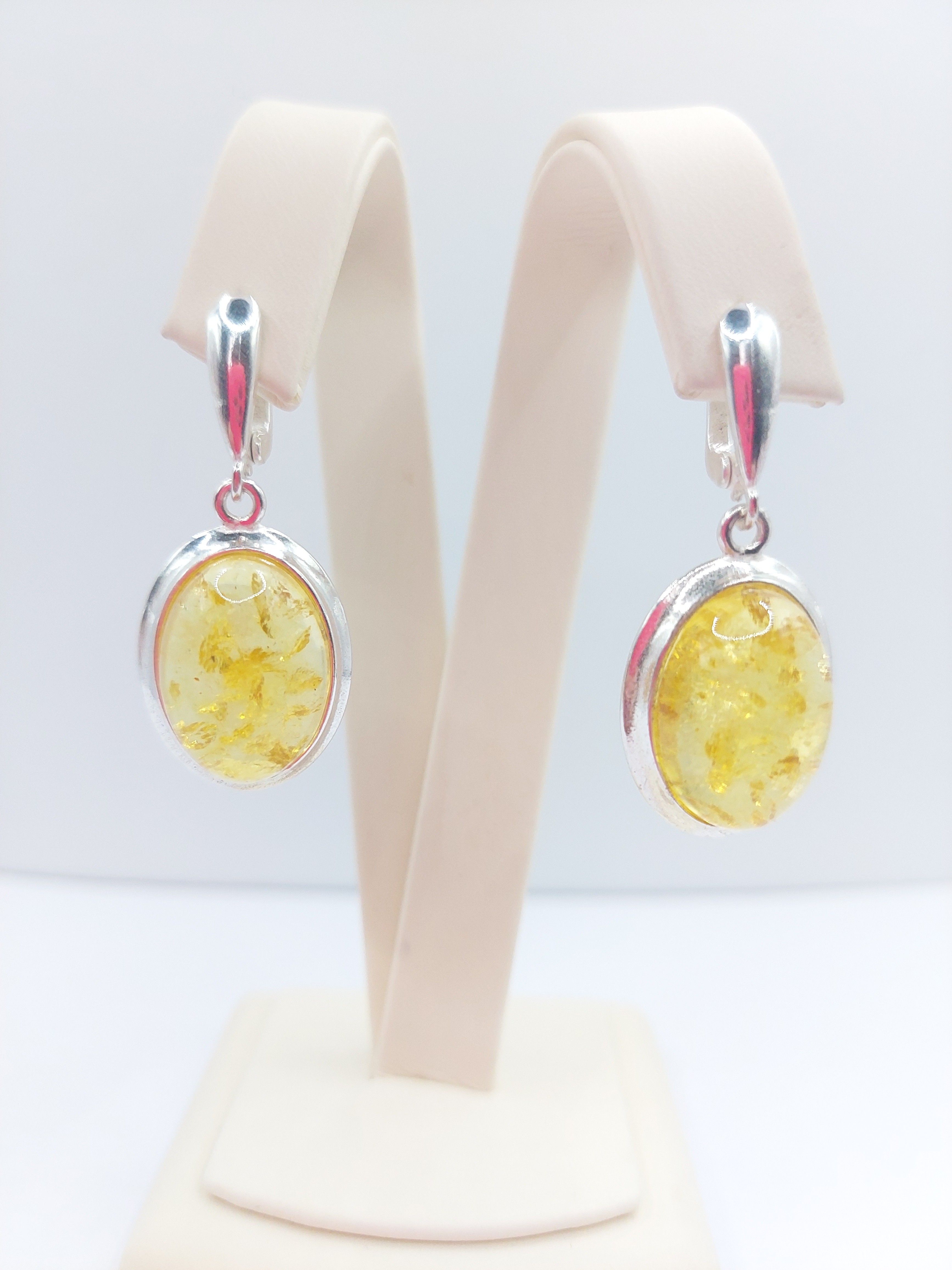 Серьги из посеребренного покрытия с кабошоном из янтаря .