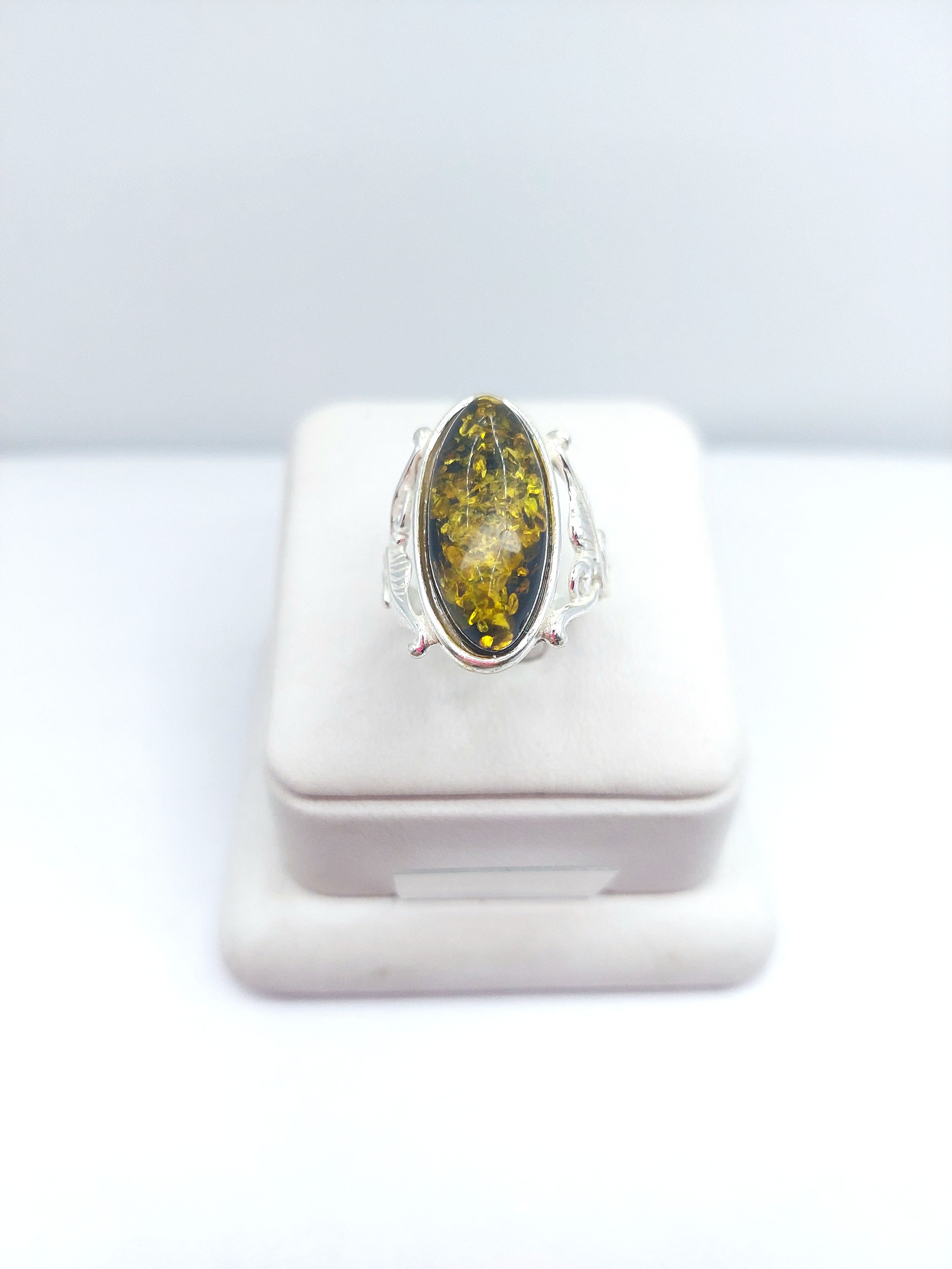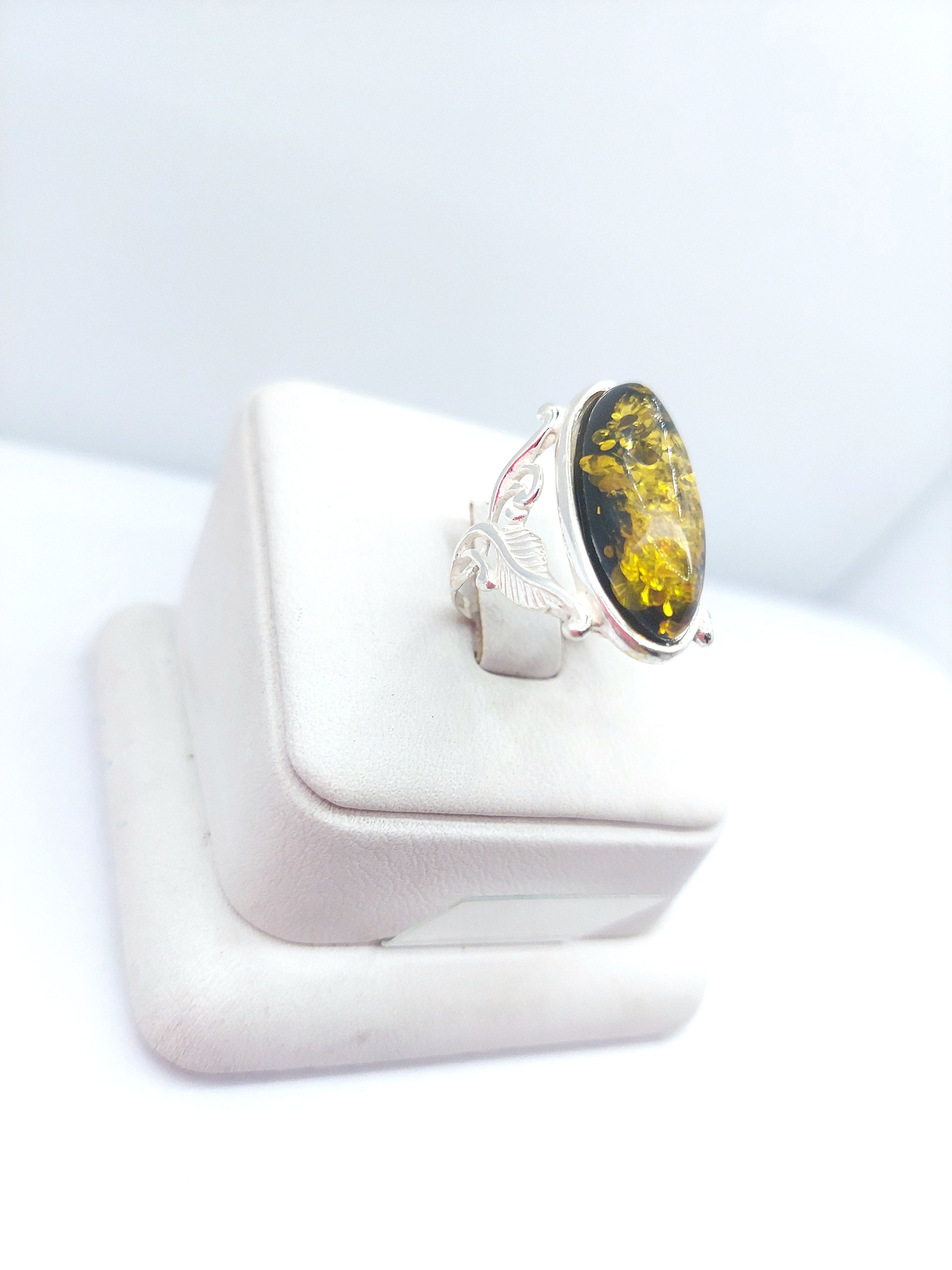 Кольцо из посеребренного покрытия с кабошоном из янтаря .