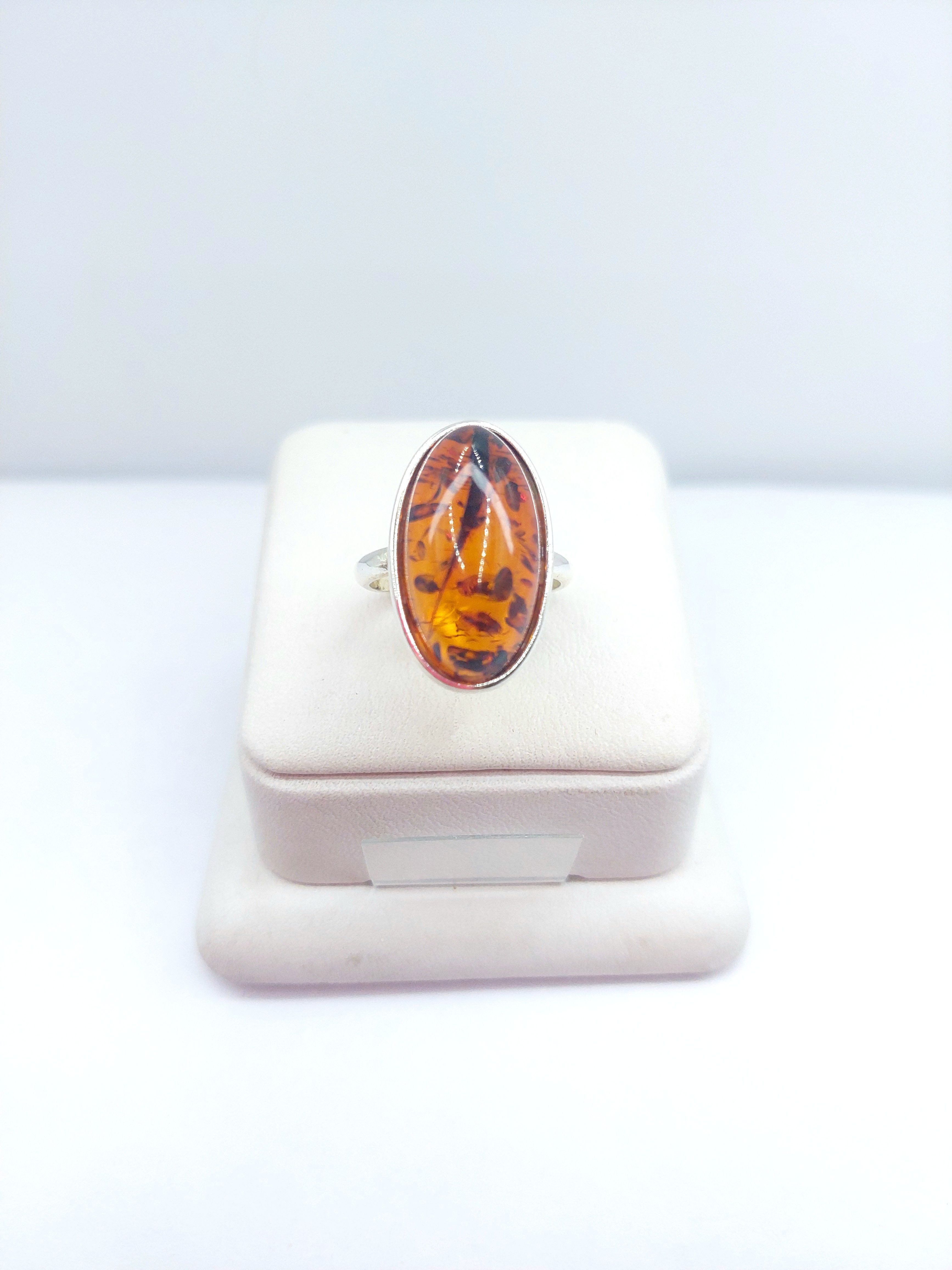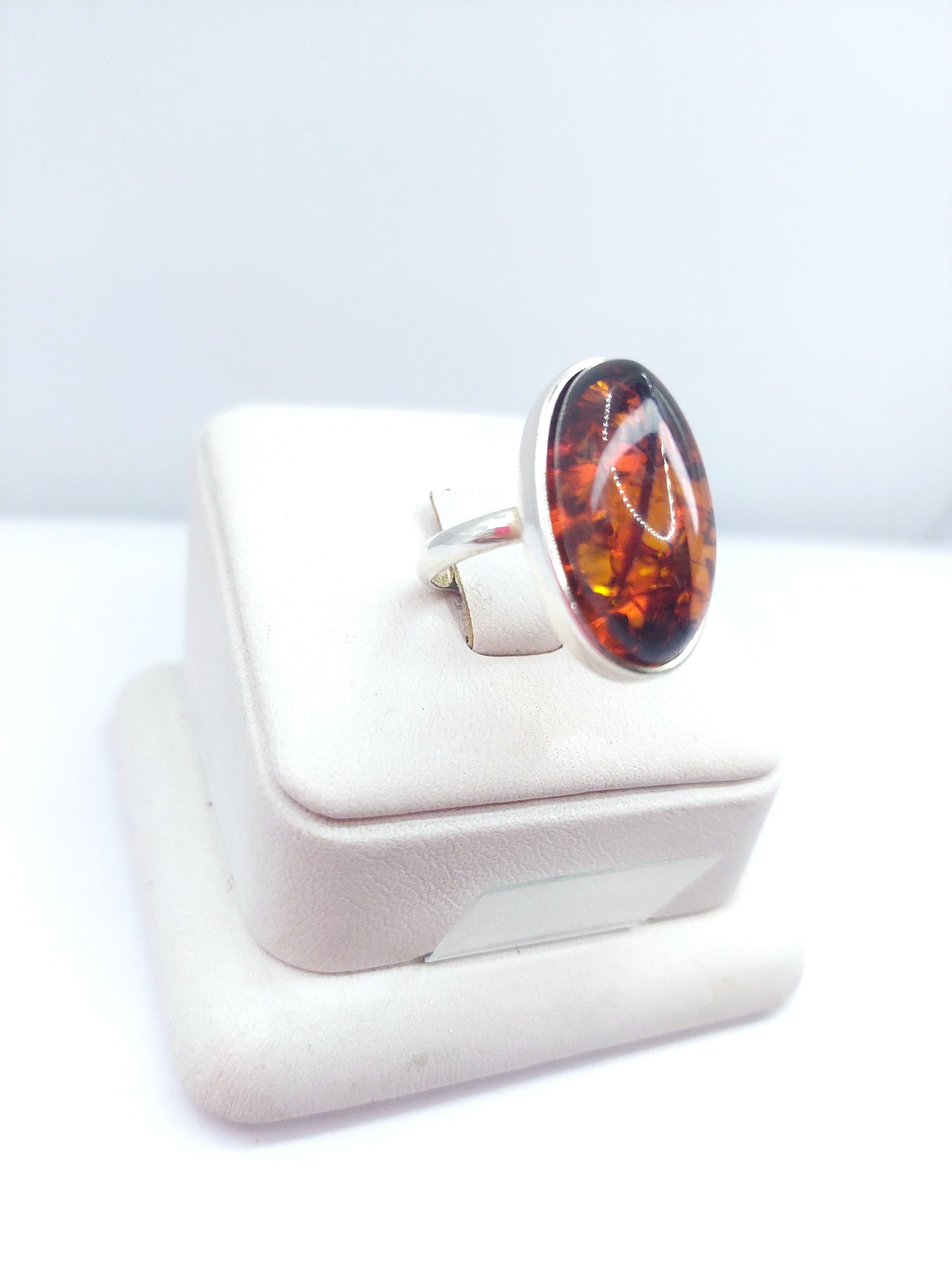 Кольцо из посеребренного покрытия с кабошоном из янтаря .