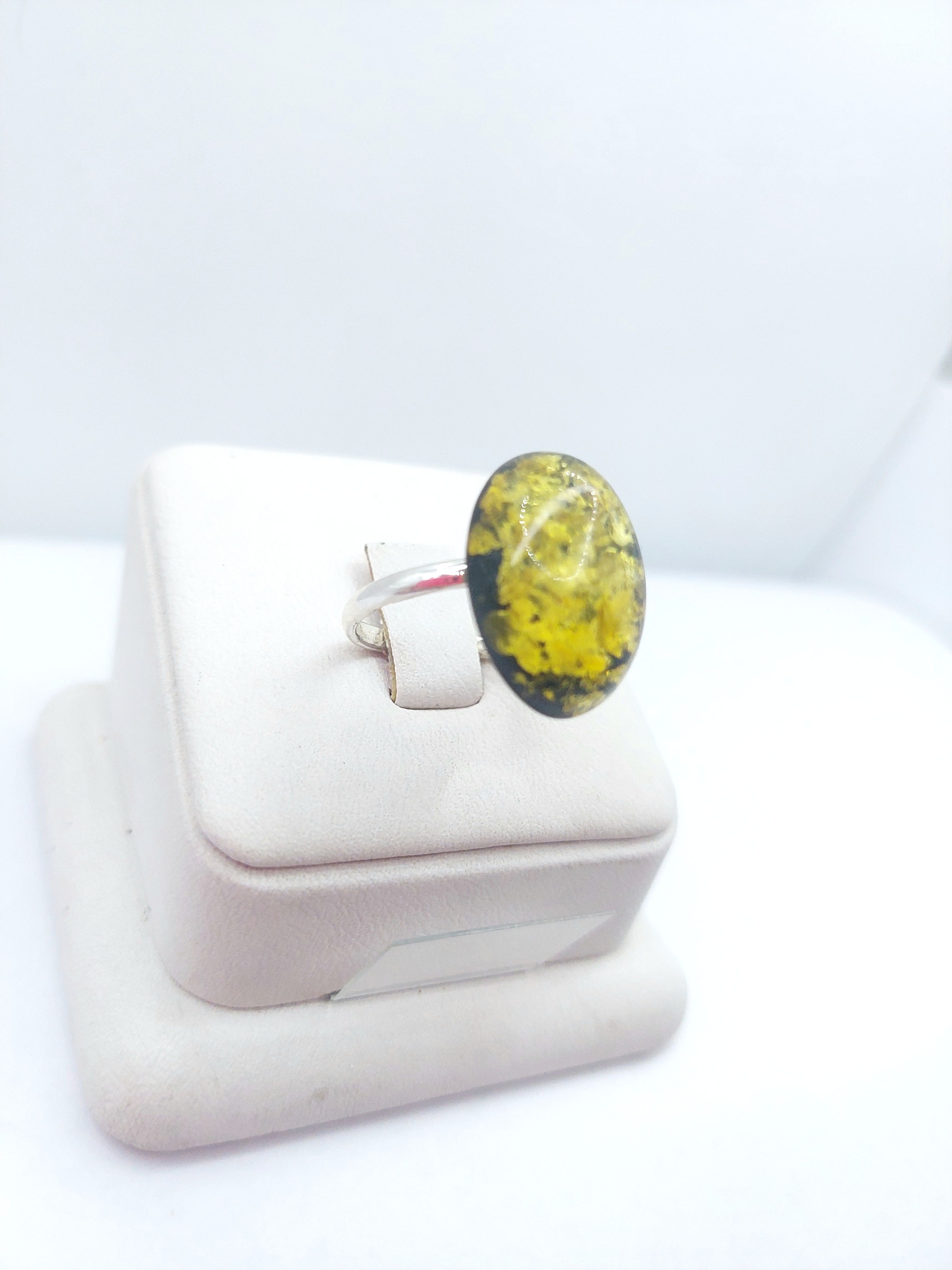 Кольцо из посеребренного покрытия с кабошоном из янтаря .