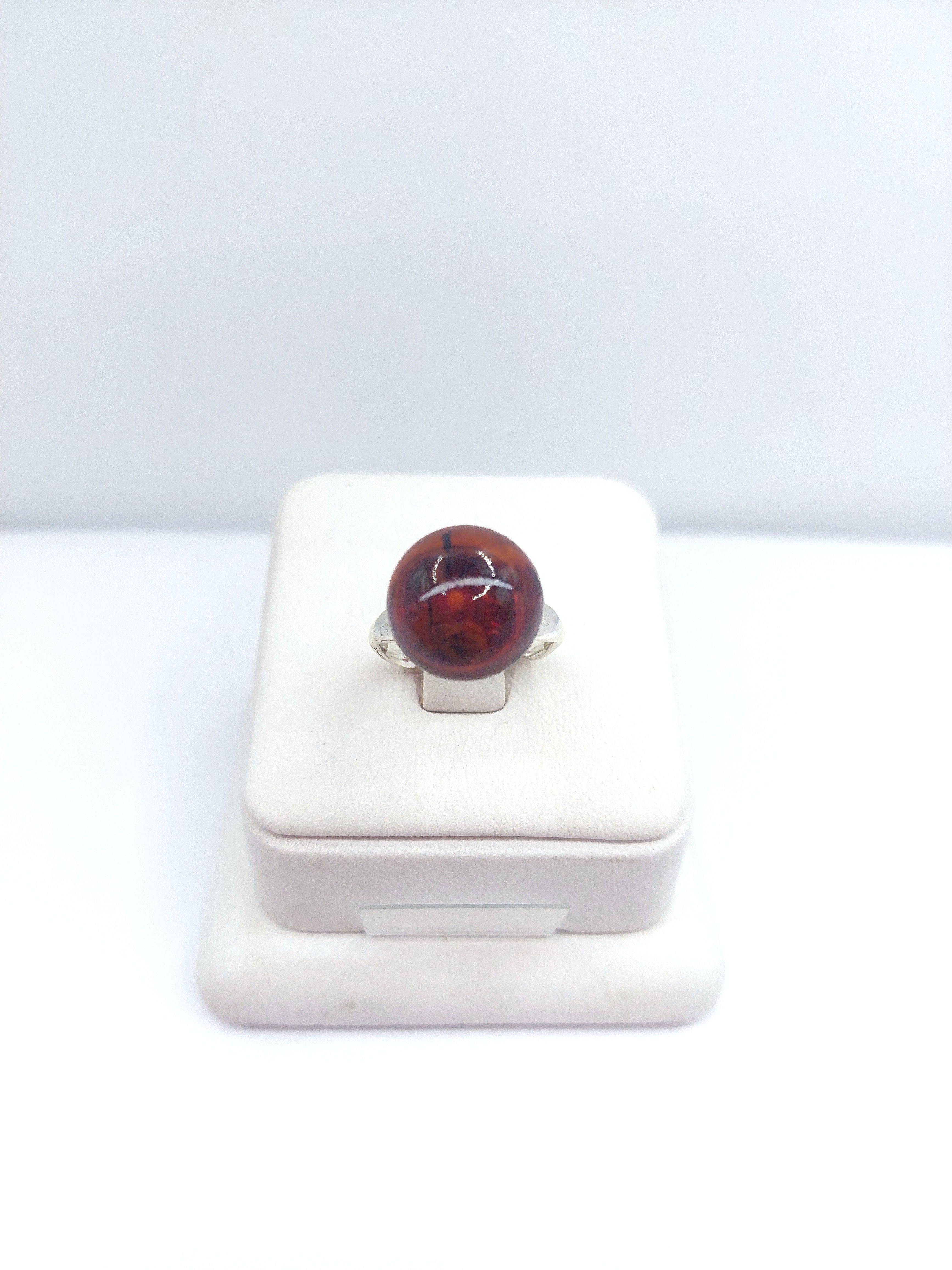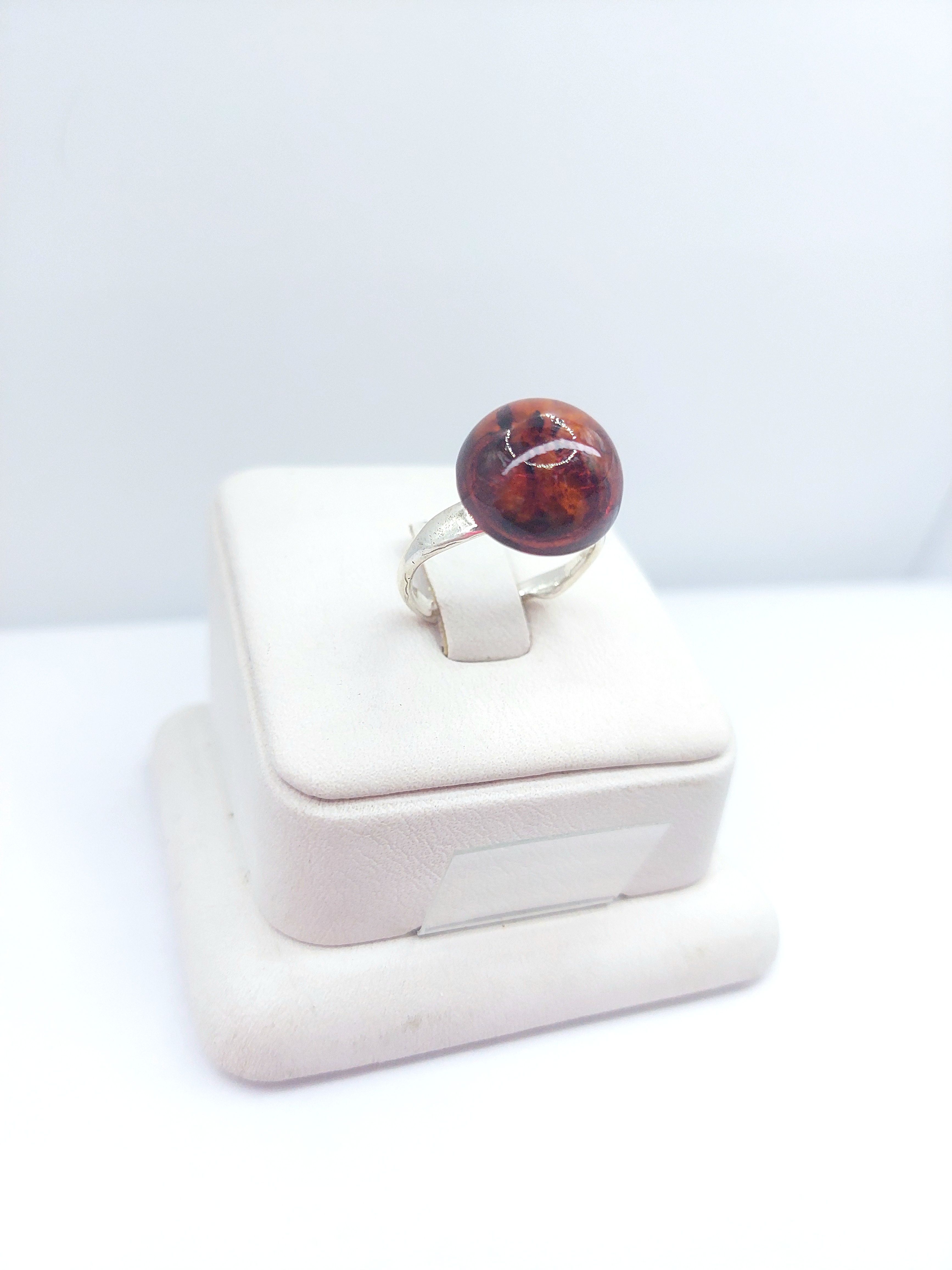 Кольцо из посеребренного покрытия с кабошоном из янтаря .
