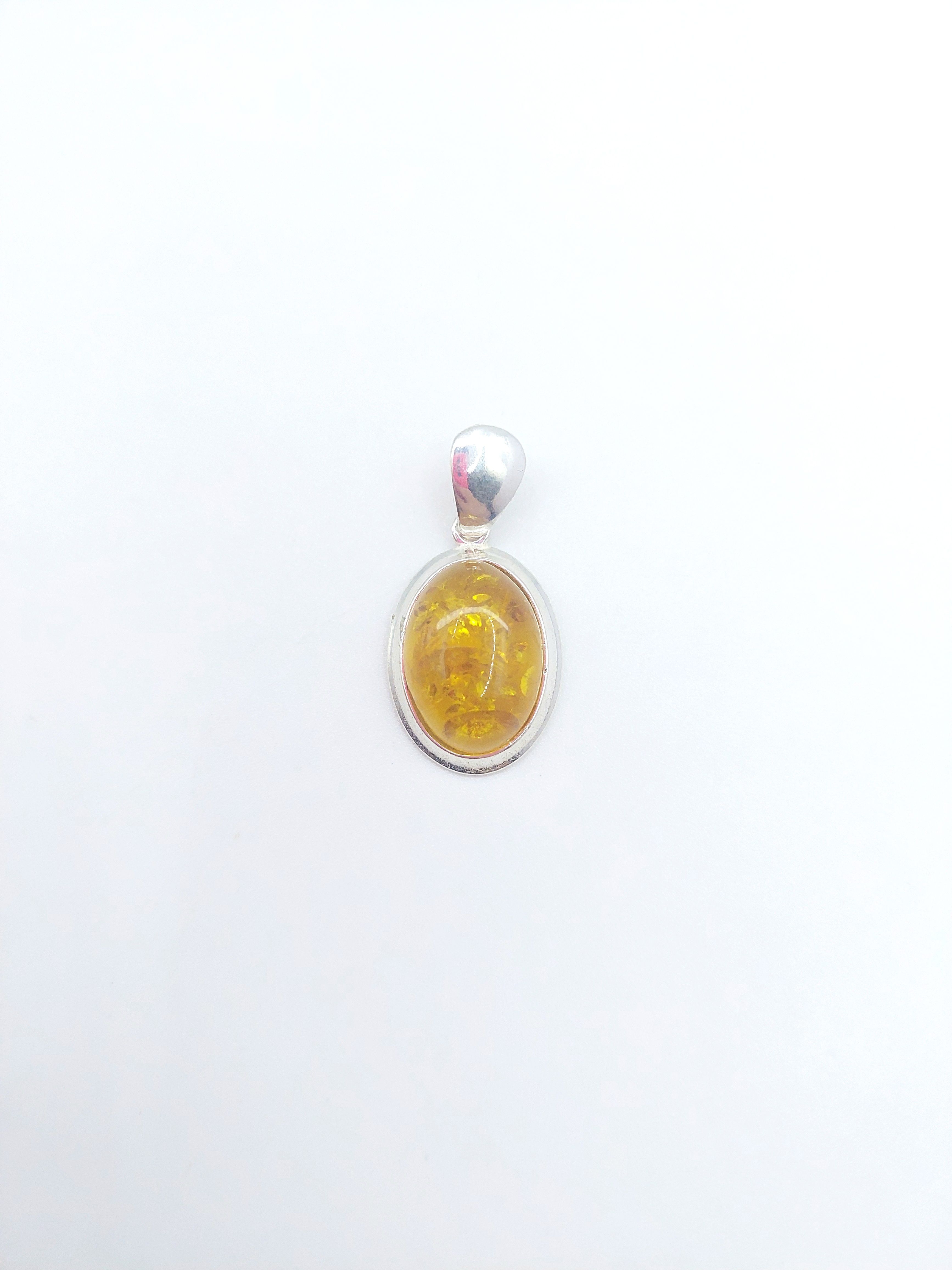 Кулон из посеребренного покрытия с кабошоном янтаря.