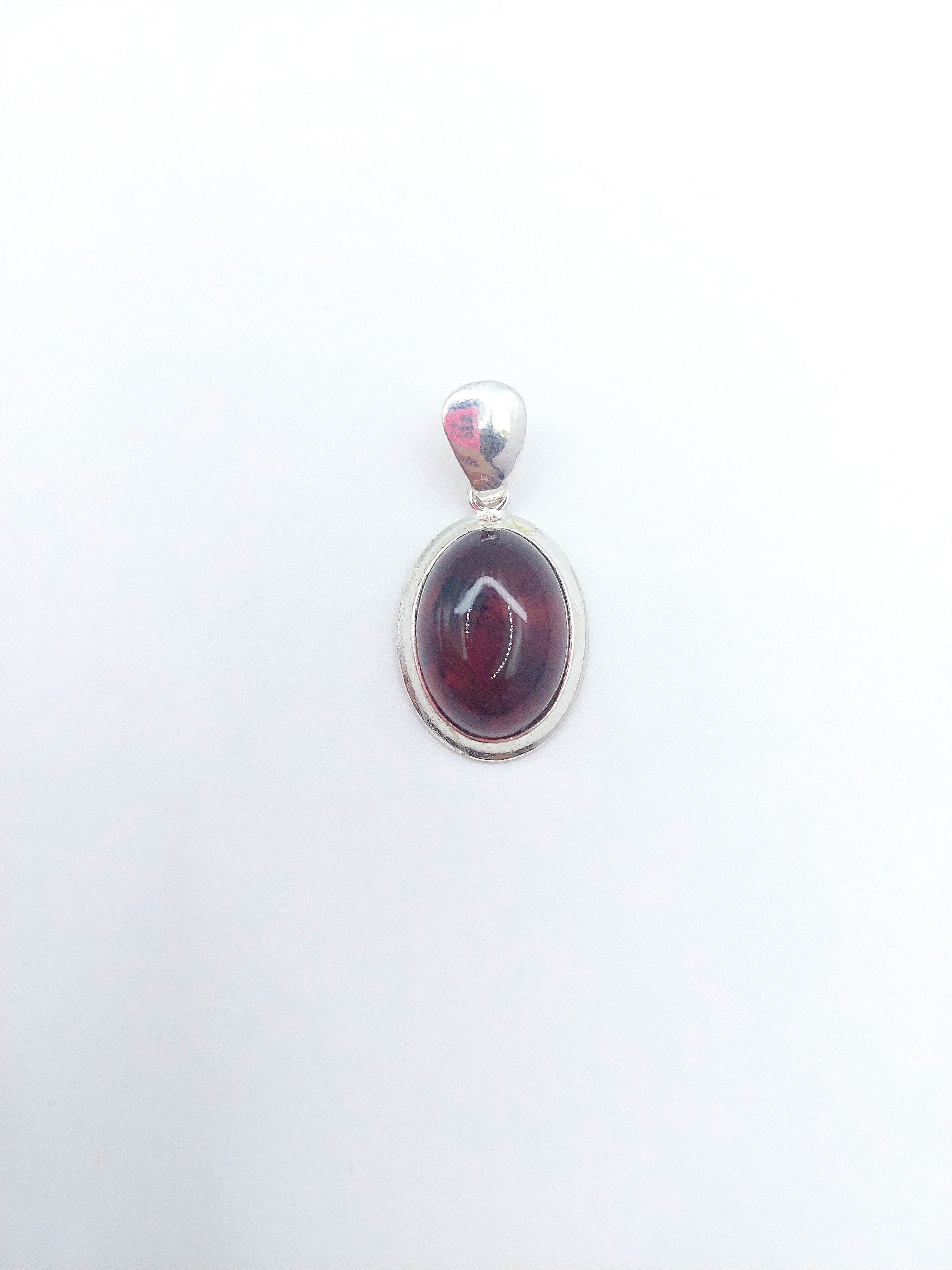 Кулон из посеребренного покрытия с кабошоном янтаря.