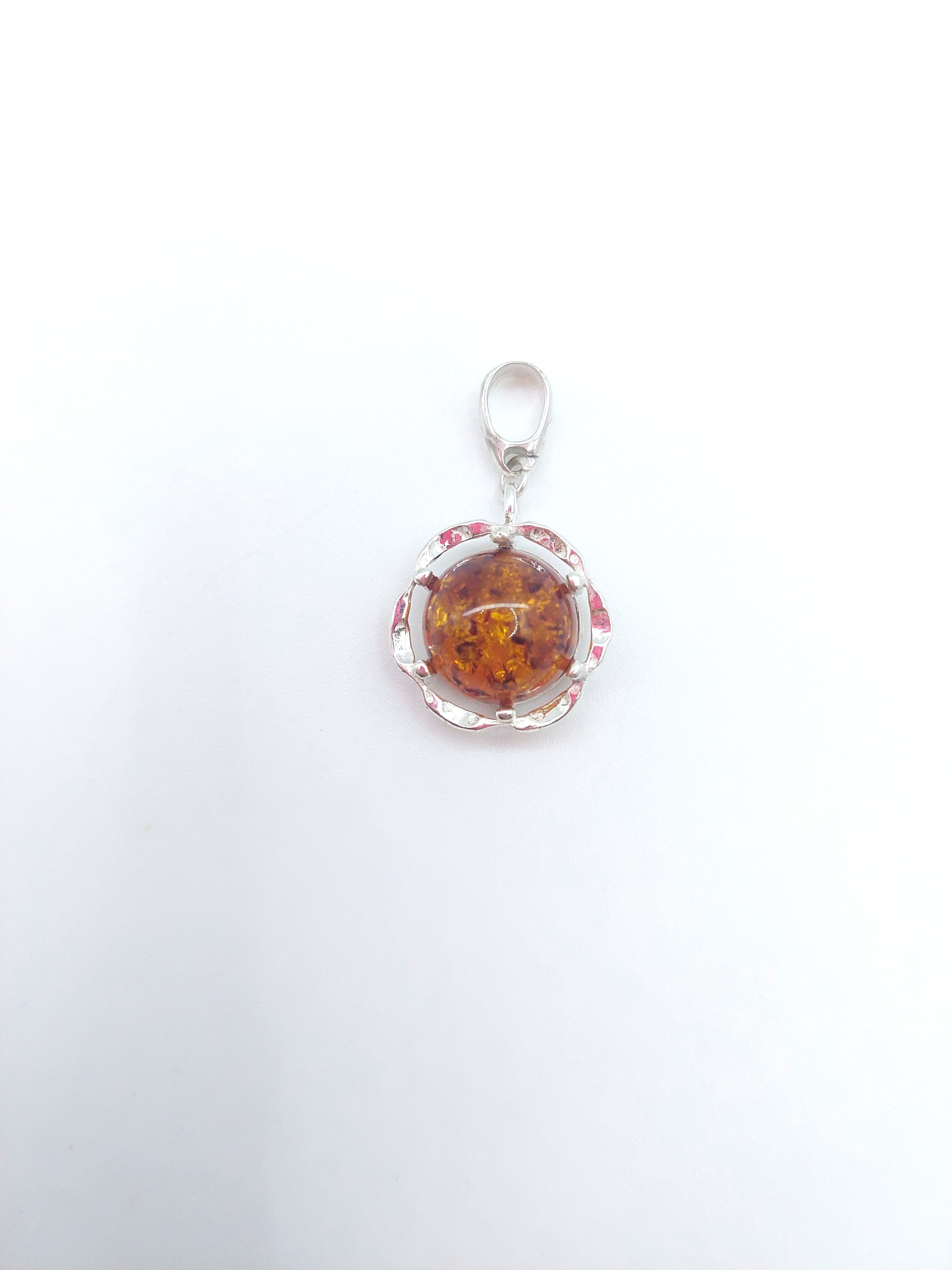 Кулон из посеребренного покрытия с кабошоном янтаря.