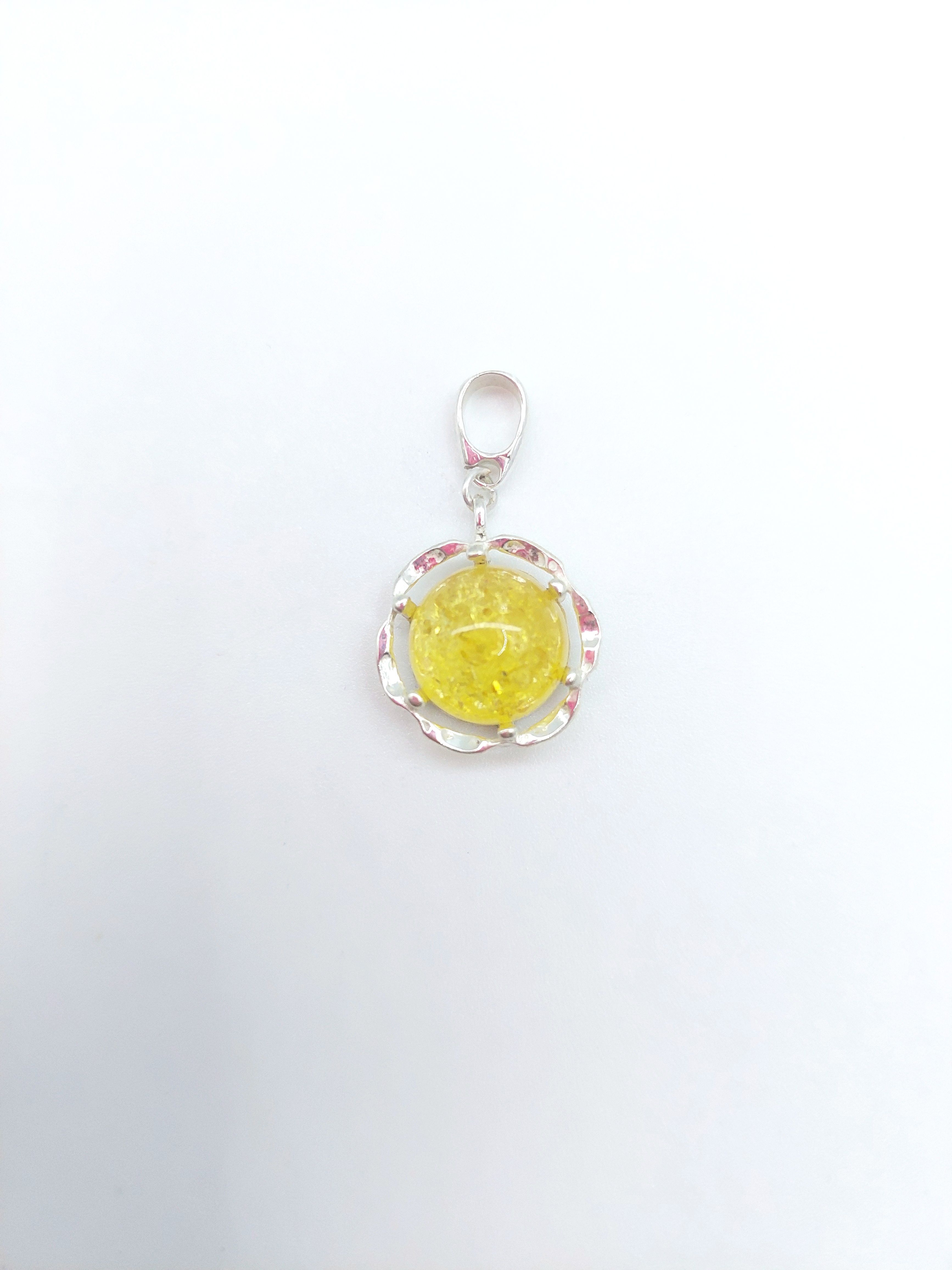 Кулон из посеребренного покрытия с кабошоном янтаря.