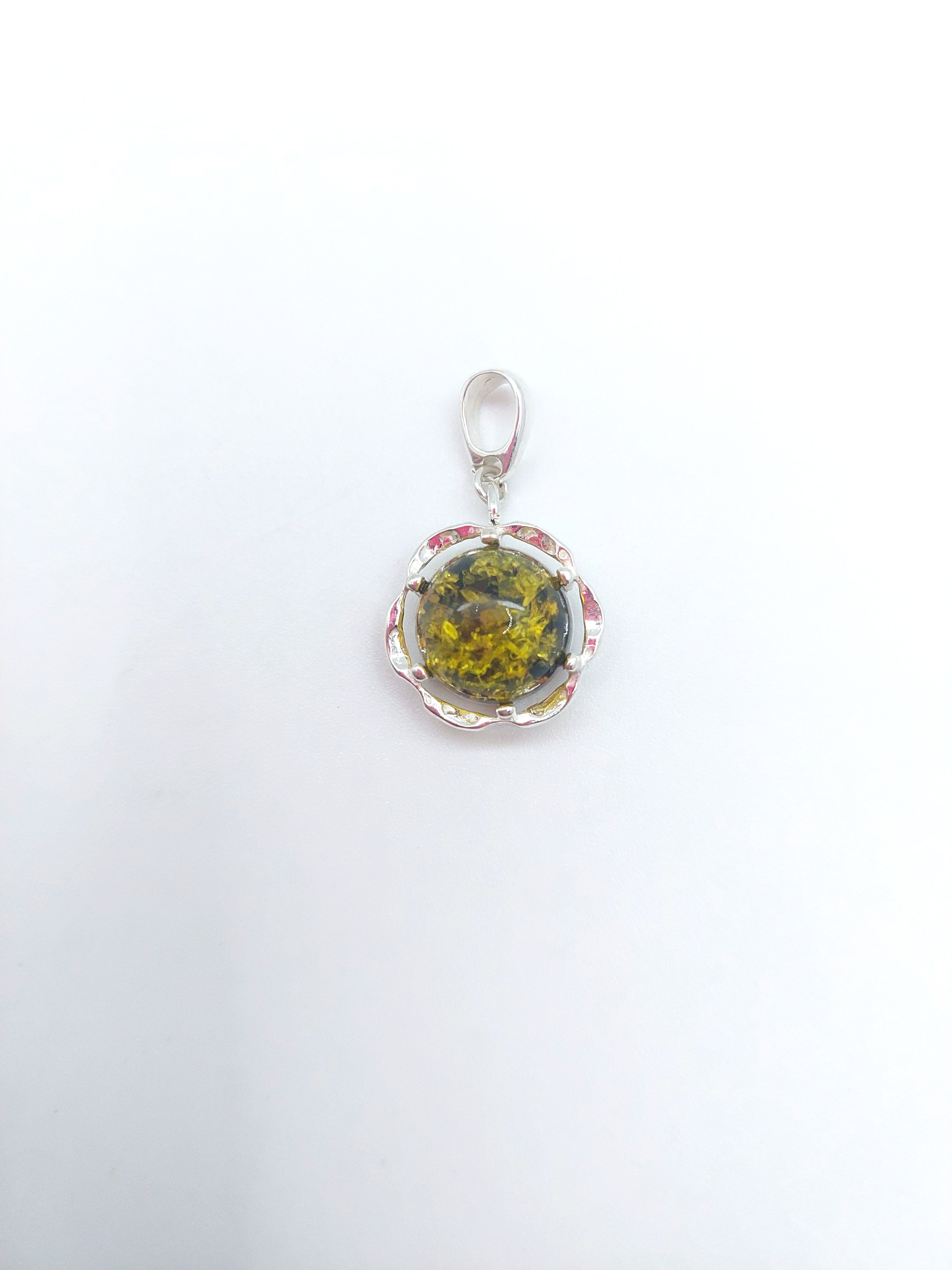 Кулон из посеребренного покрытия с кабошоном янтаря.