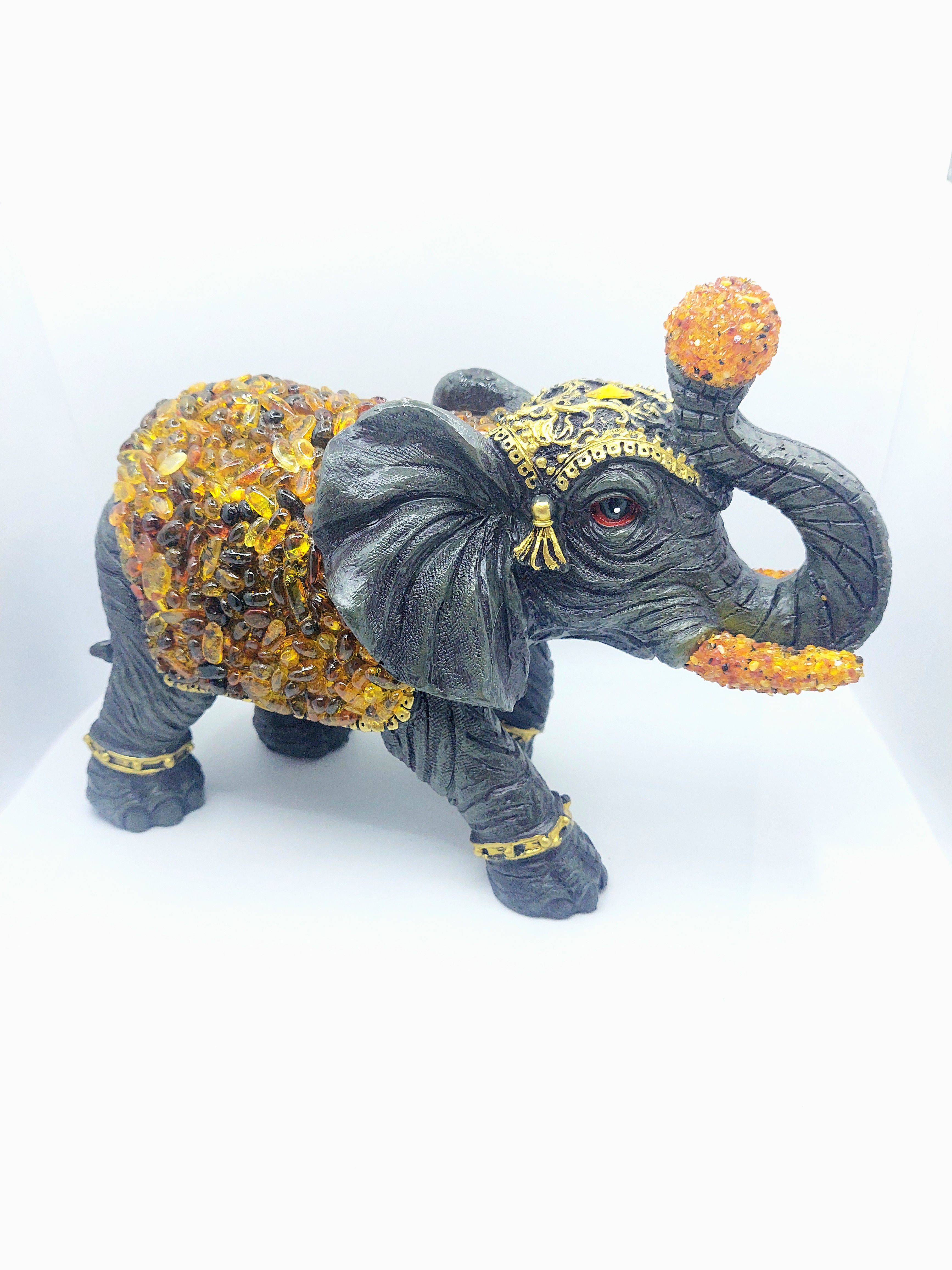 Слон с натуральным янтарем, символ богатства и благополучия .