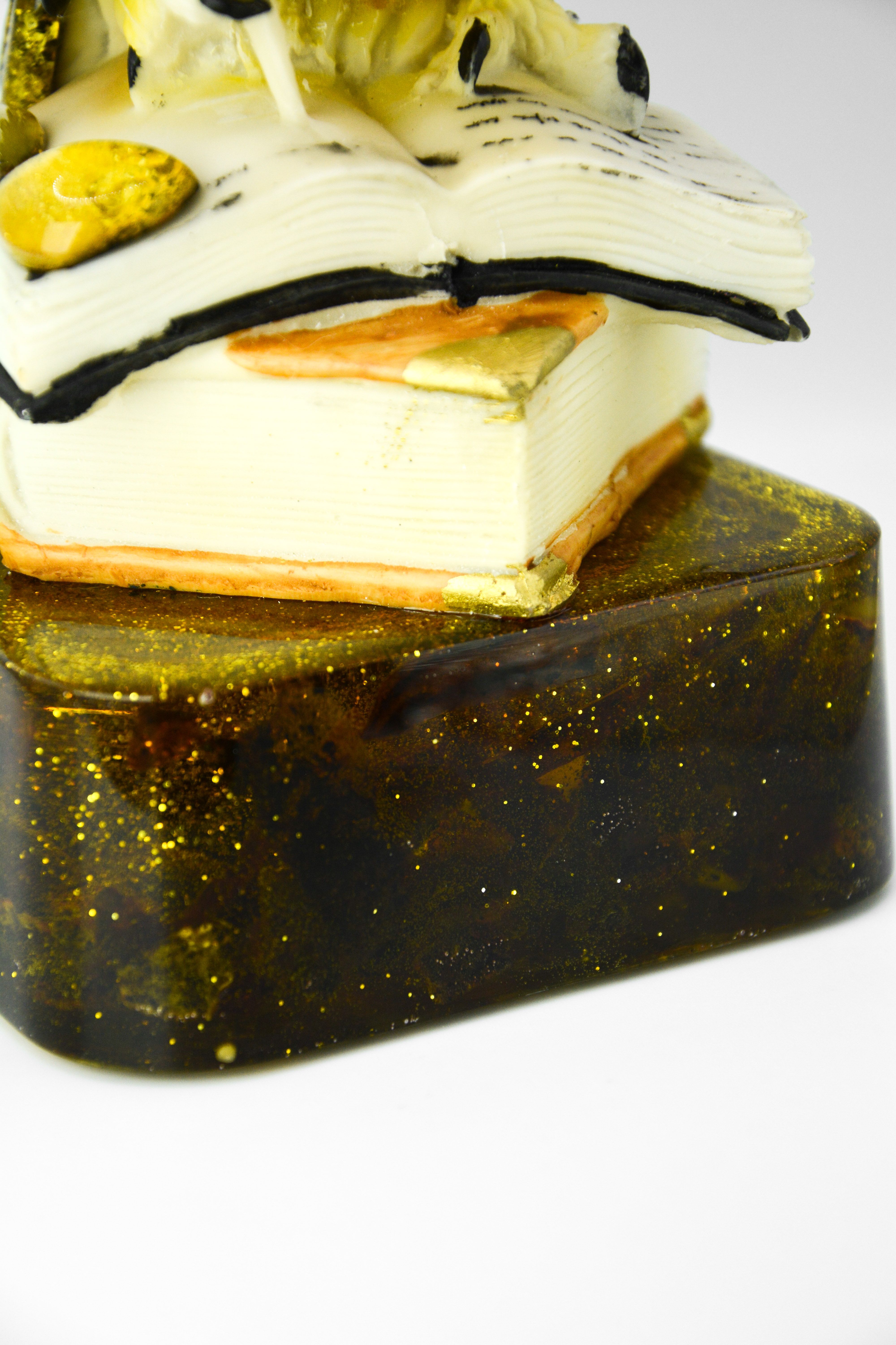 Состав : пластиковая основа , кабошоны из янтаря , ювелирная смола , срез зеленого янтаря, глиттер .