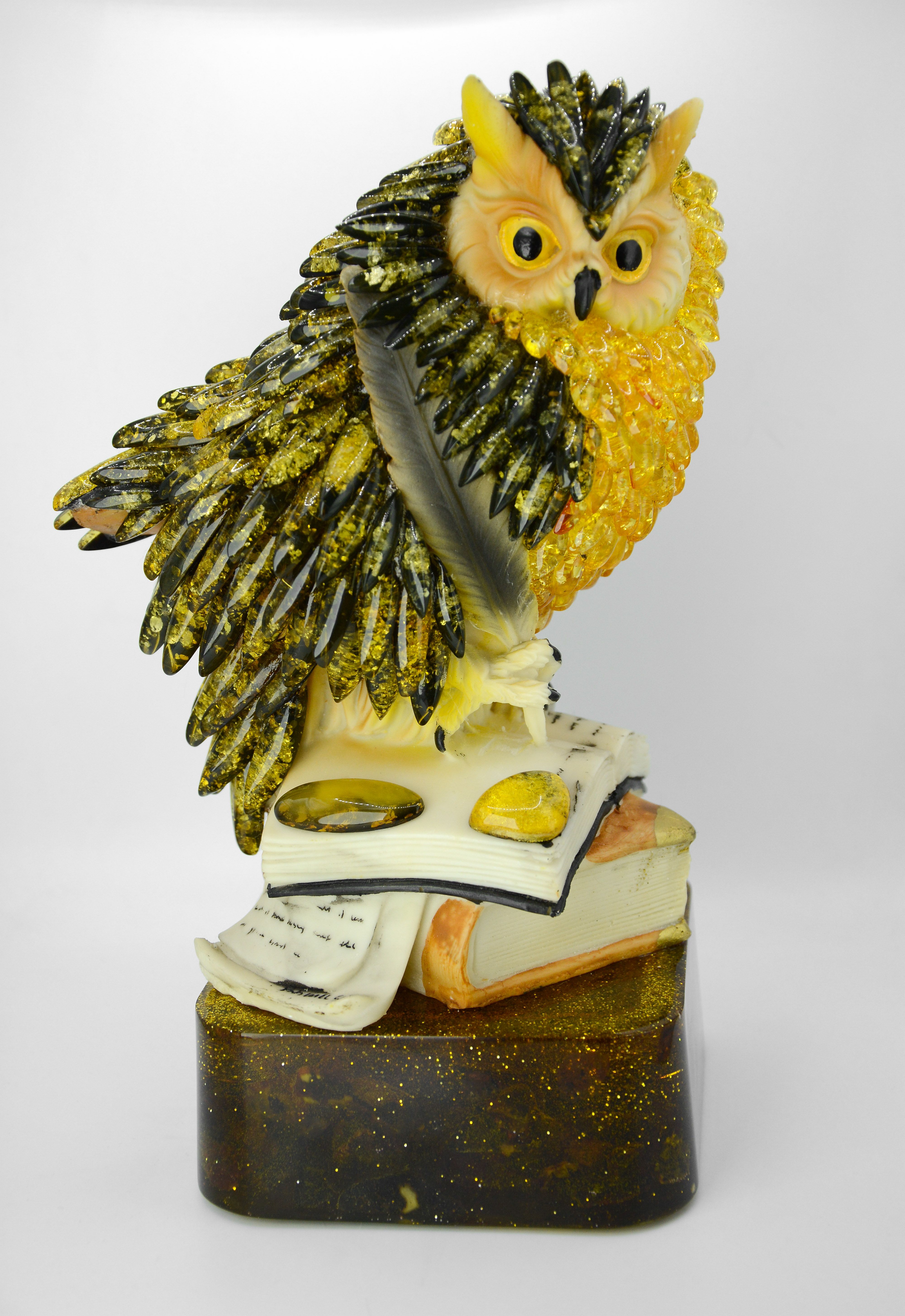 Уникальное изделие на подставке с янтарем внутри .