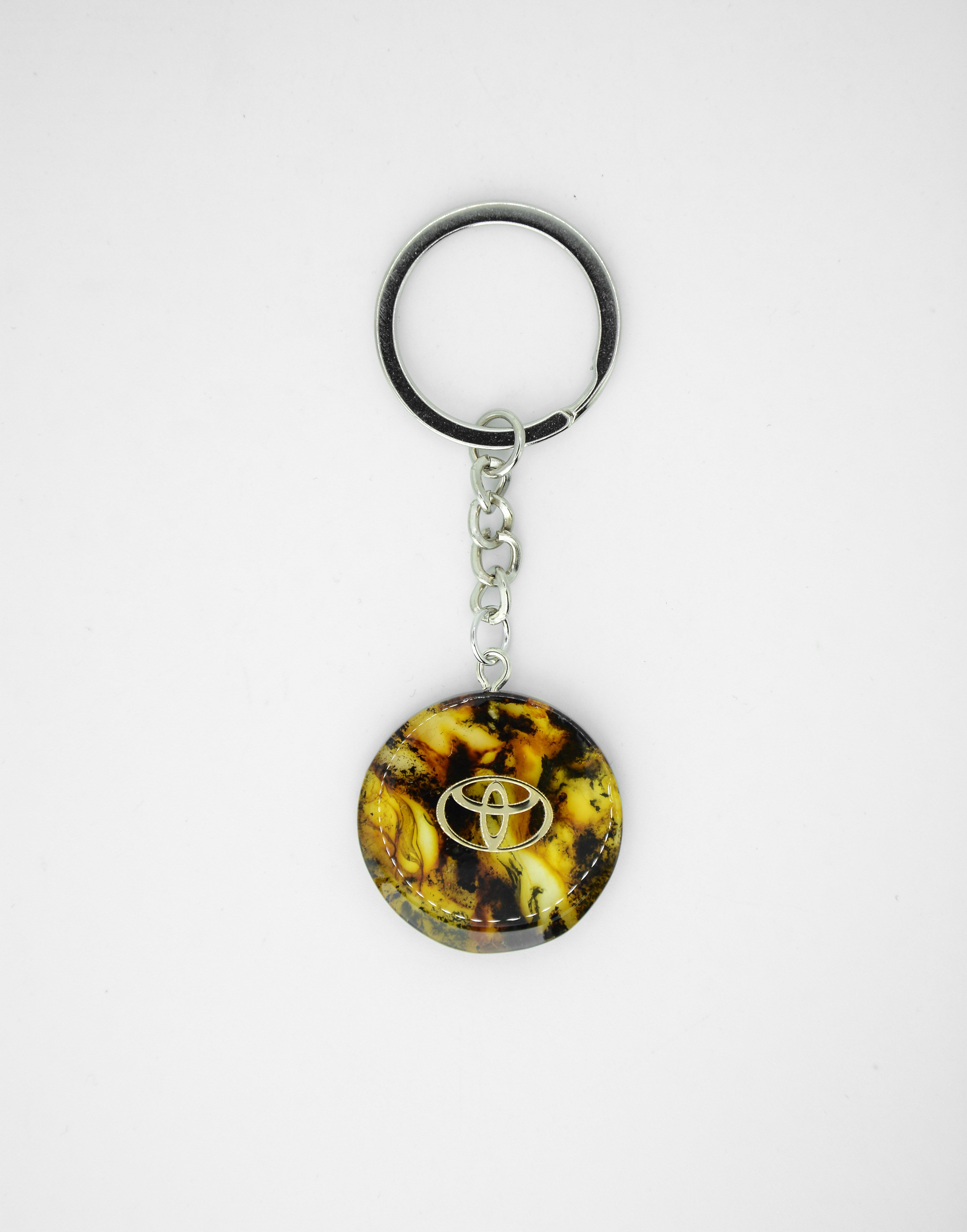 Брелок из натурального янтарного пресса без смолы , металлизированная наклейка , сверху линза , чтобы наклейка со временем не стерлась .
