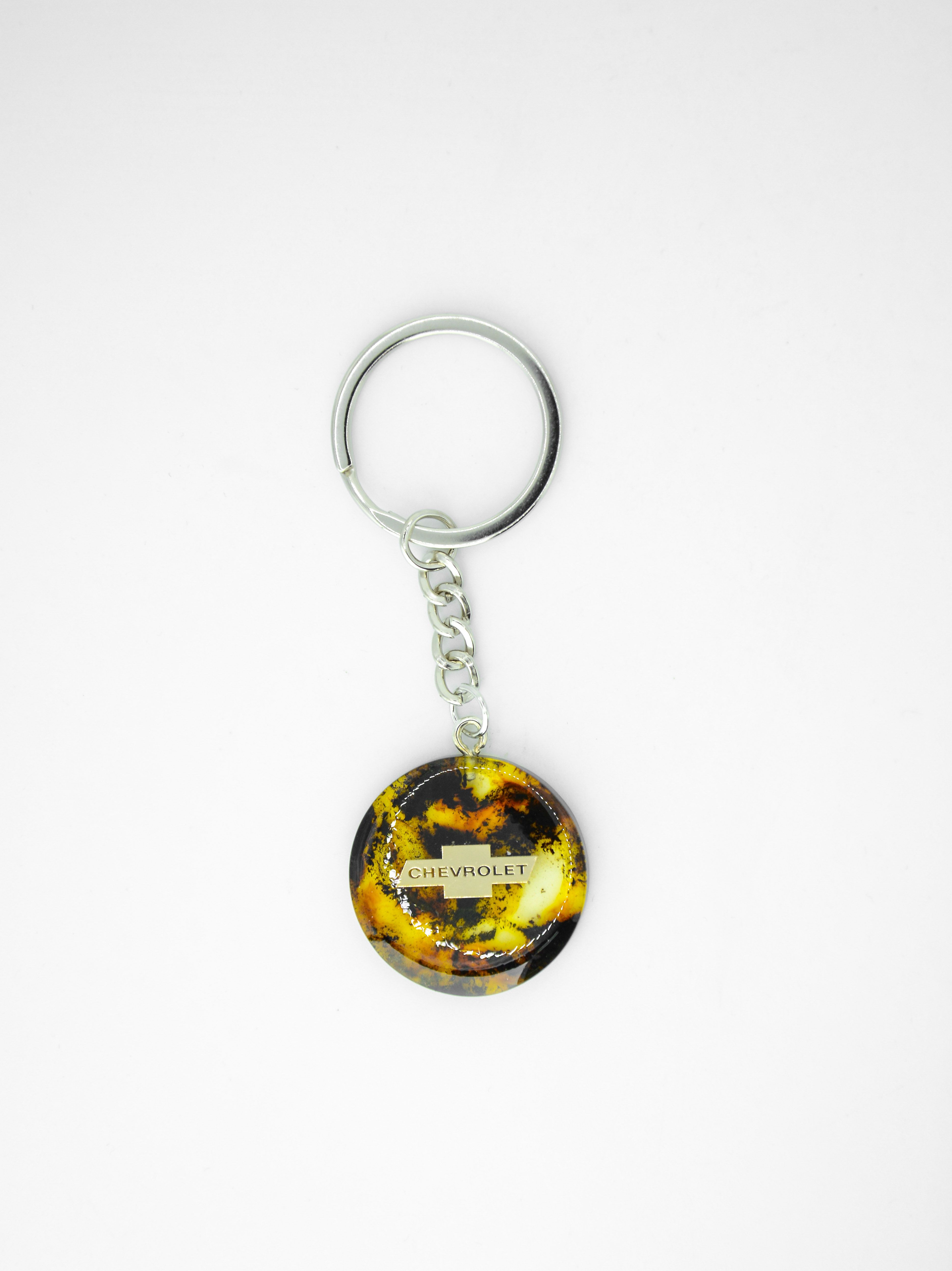 Брелок из натурального янтарного пресса без смолы , металлизированная наклейка , сверху линза , чтобы наклейка со временем не стерлась .