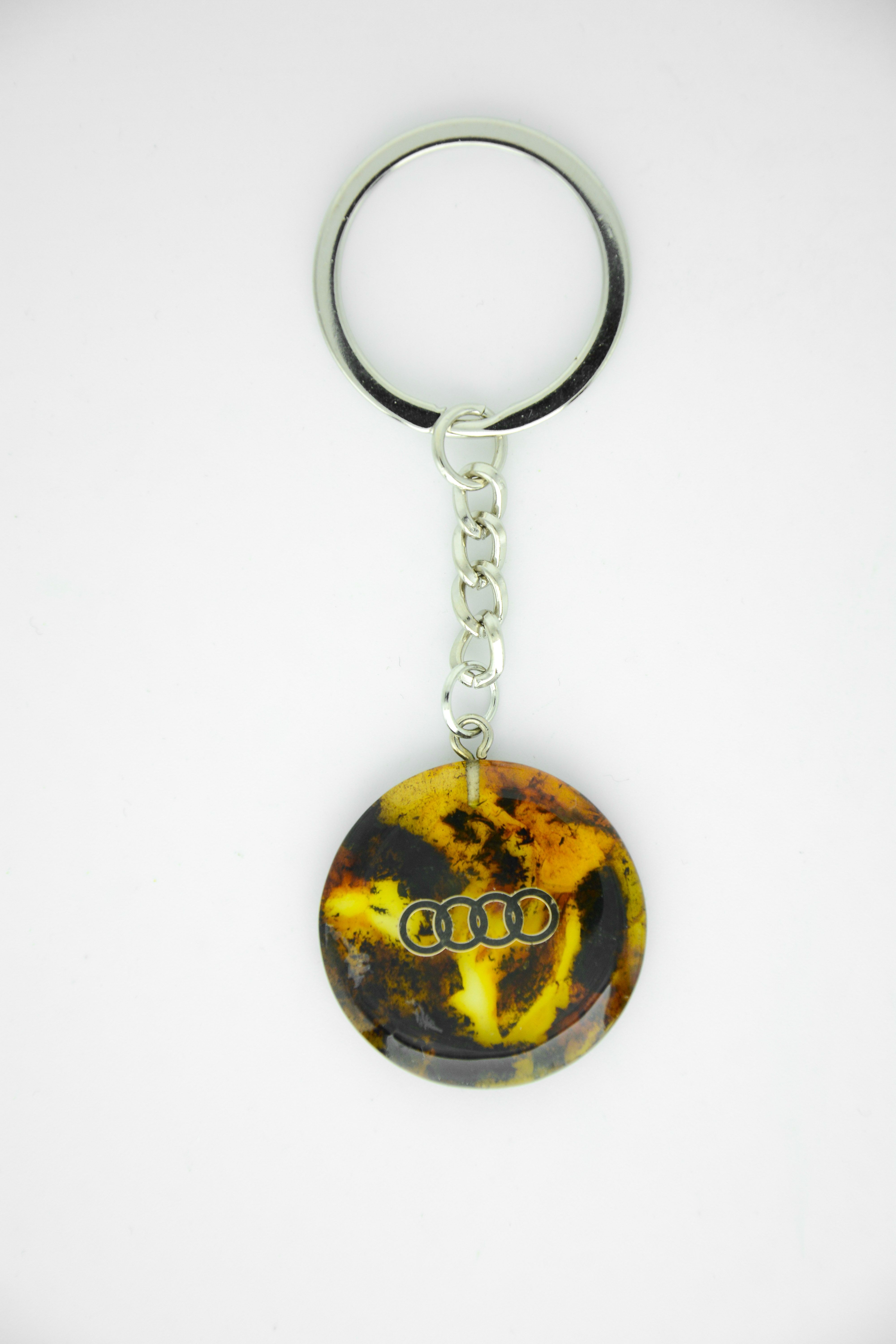 Брелок из натурального янтарного пресса без смолы , металлизированная наклейка , сверху линза , чтобы наклейка со временем не стерлась .