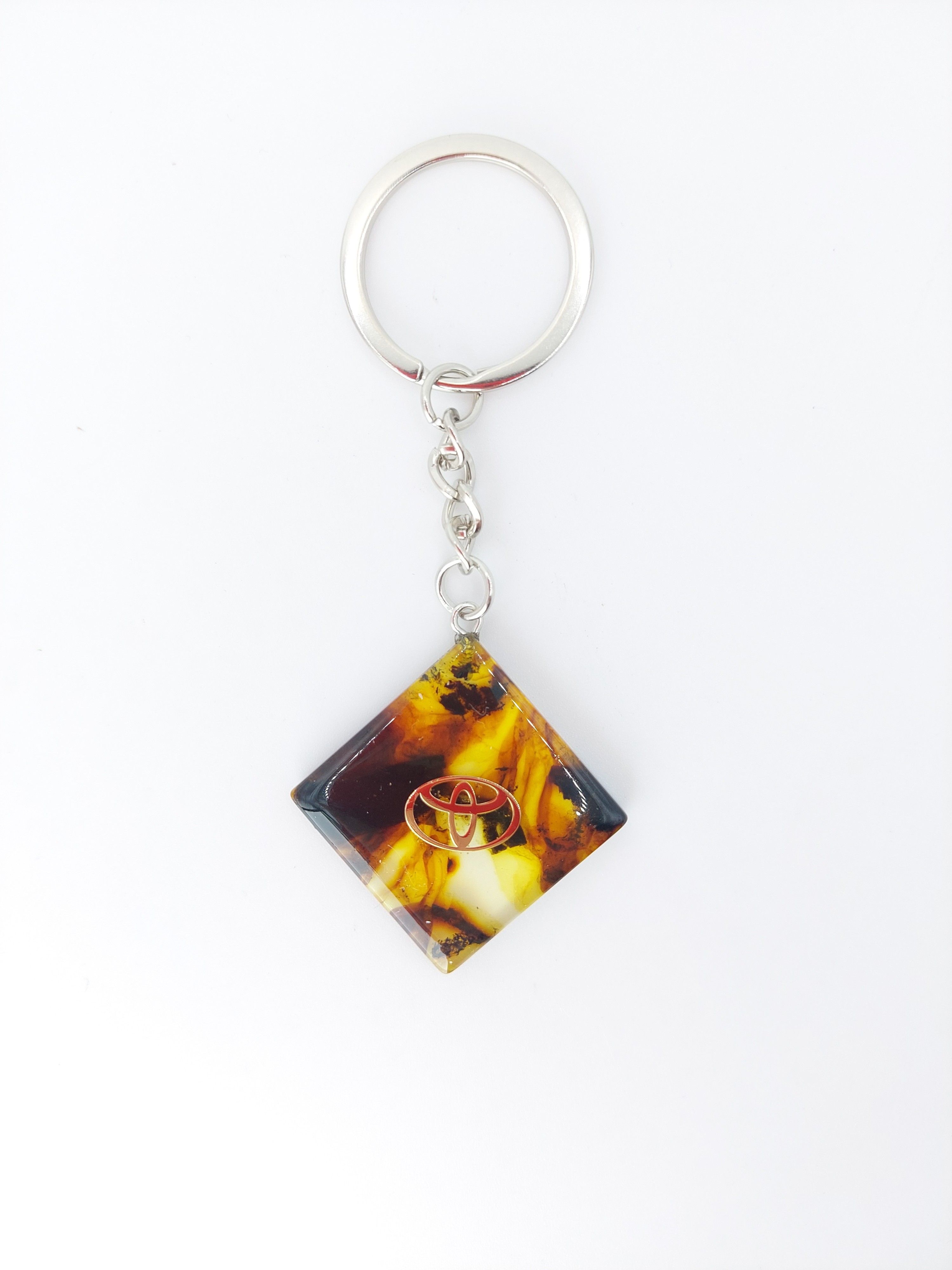 Брелок из натурального янтарного пресса без смолы , металлизированная наклейка , сверху линза , чтобы наклейка со временем не стерлась .