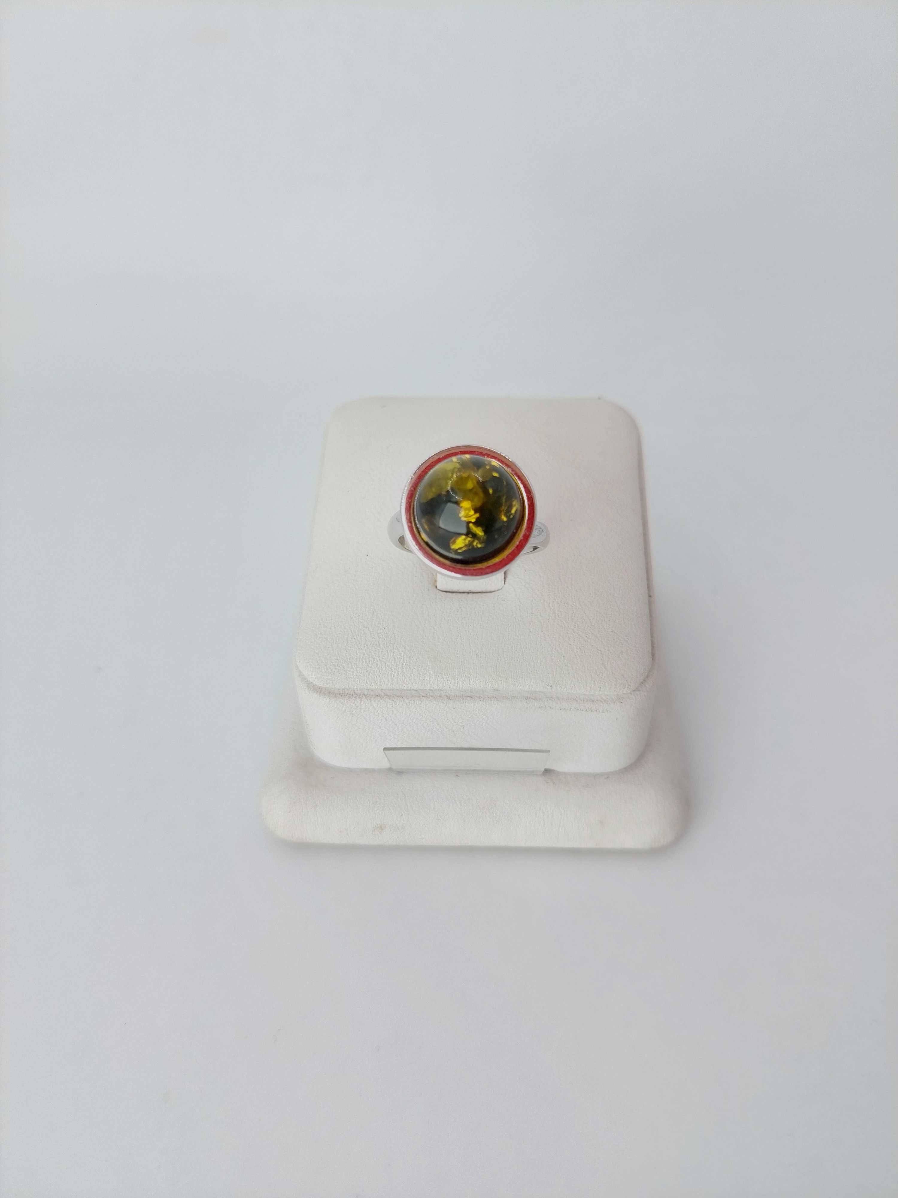 Кольцо из посеребренного покрытия с кабошоном из натурального янтаря .