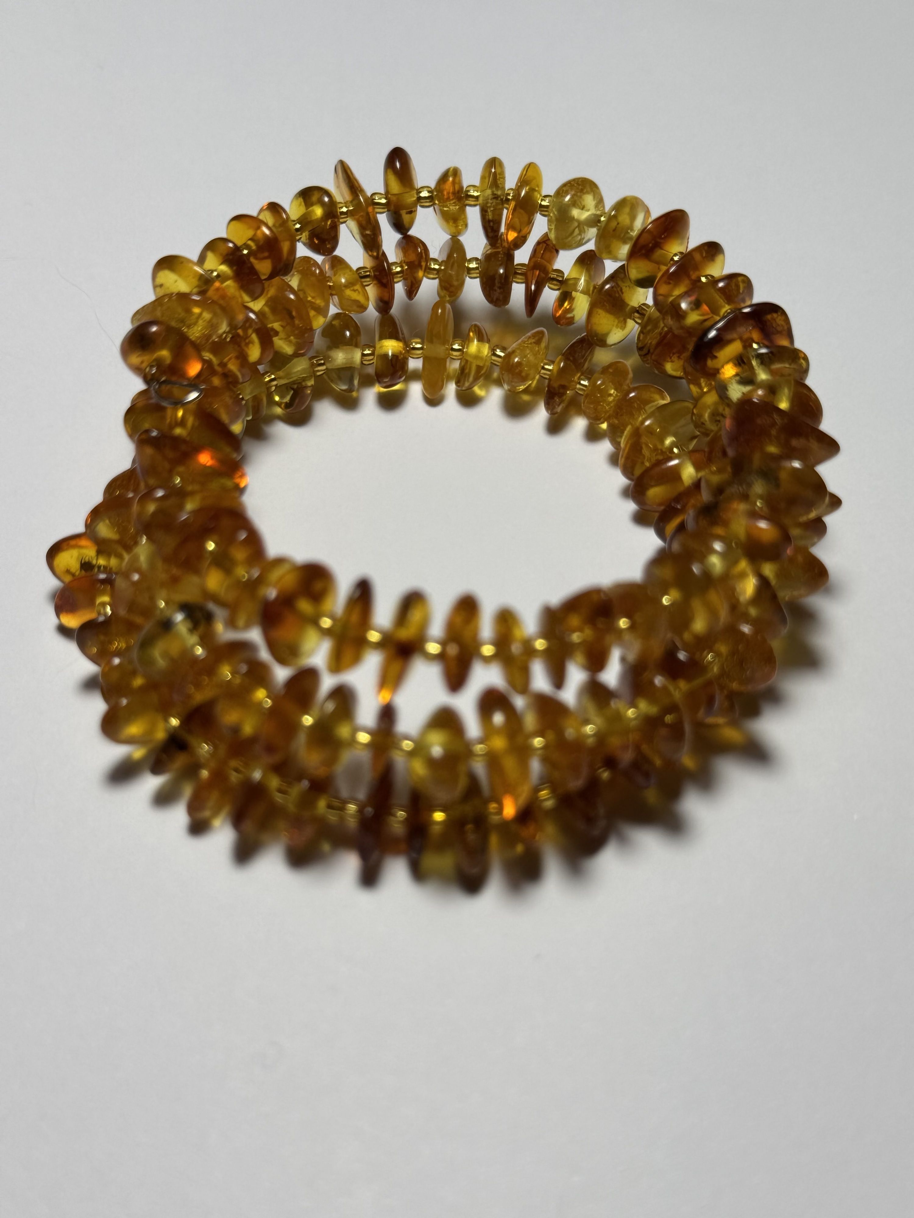 Браслет на пружине тройной из обработанного янтаря