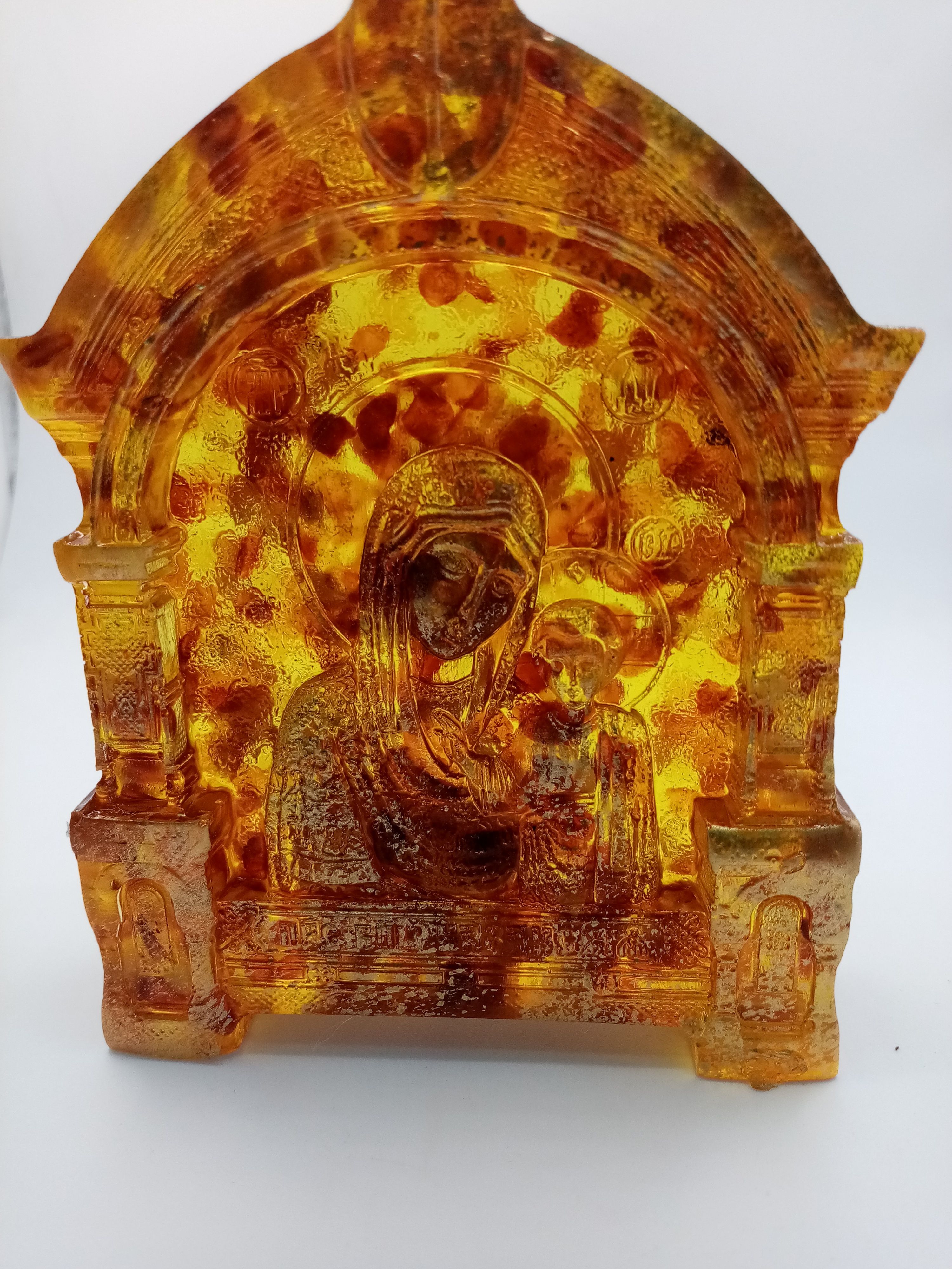 Ювелирная смола, янтарь. Размер иконы: высота 11,5 , ширина 9см., Масса 142г.