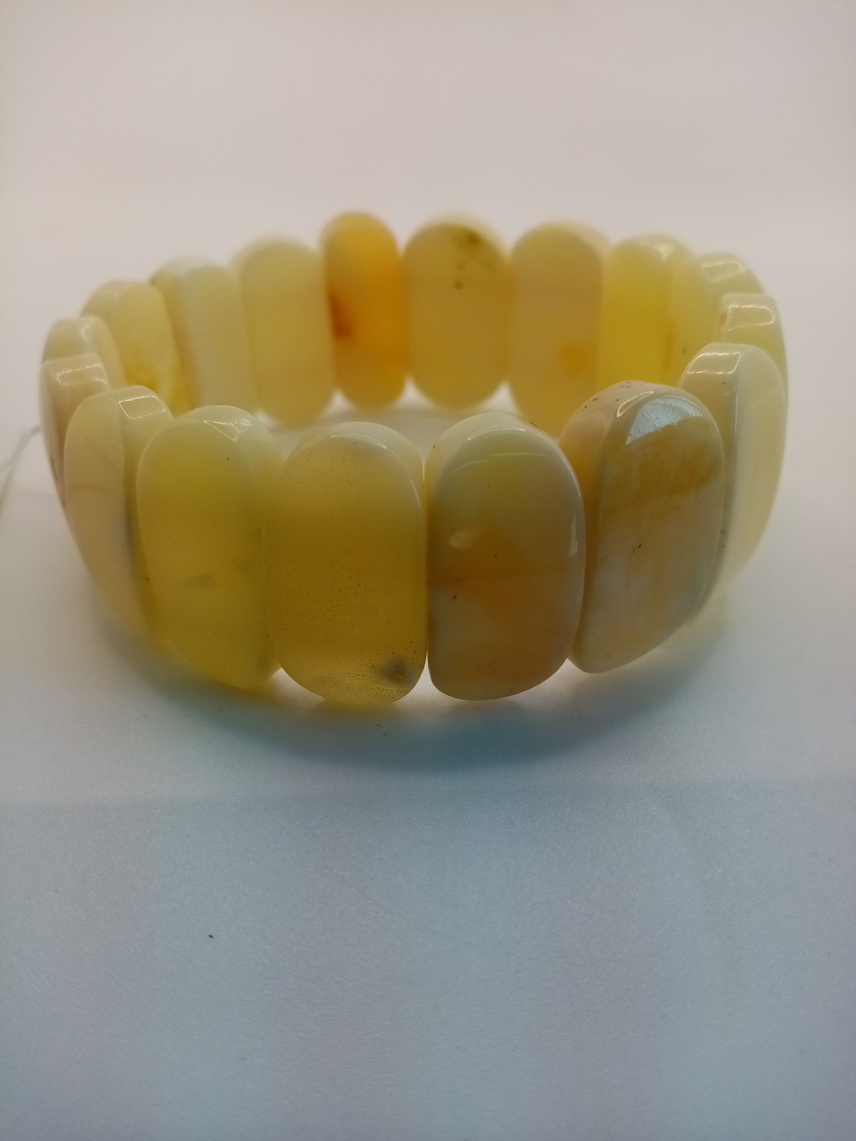 Браслет камнерезный из белого янтаря. Размер 18-20 см.