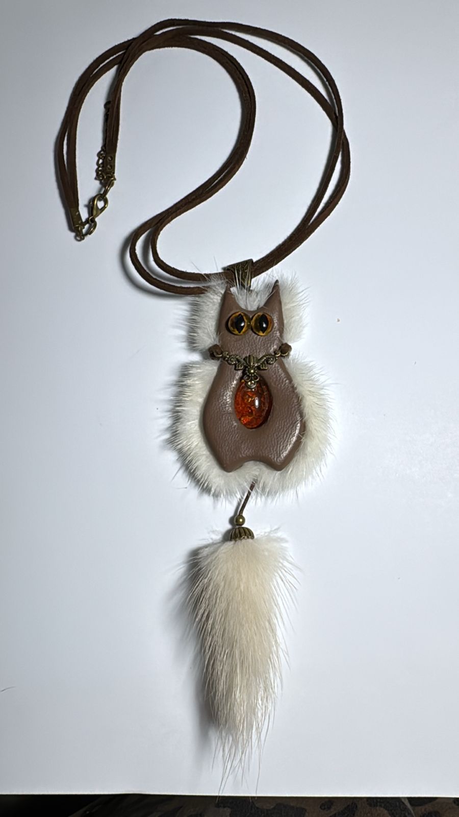 янтарь, полимерная глина,мех норки, металлическая фурнитура