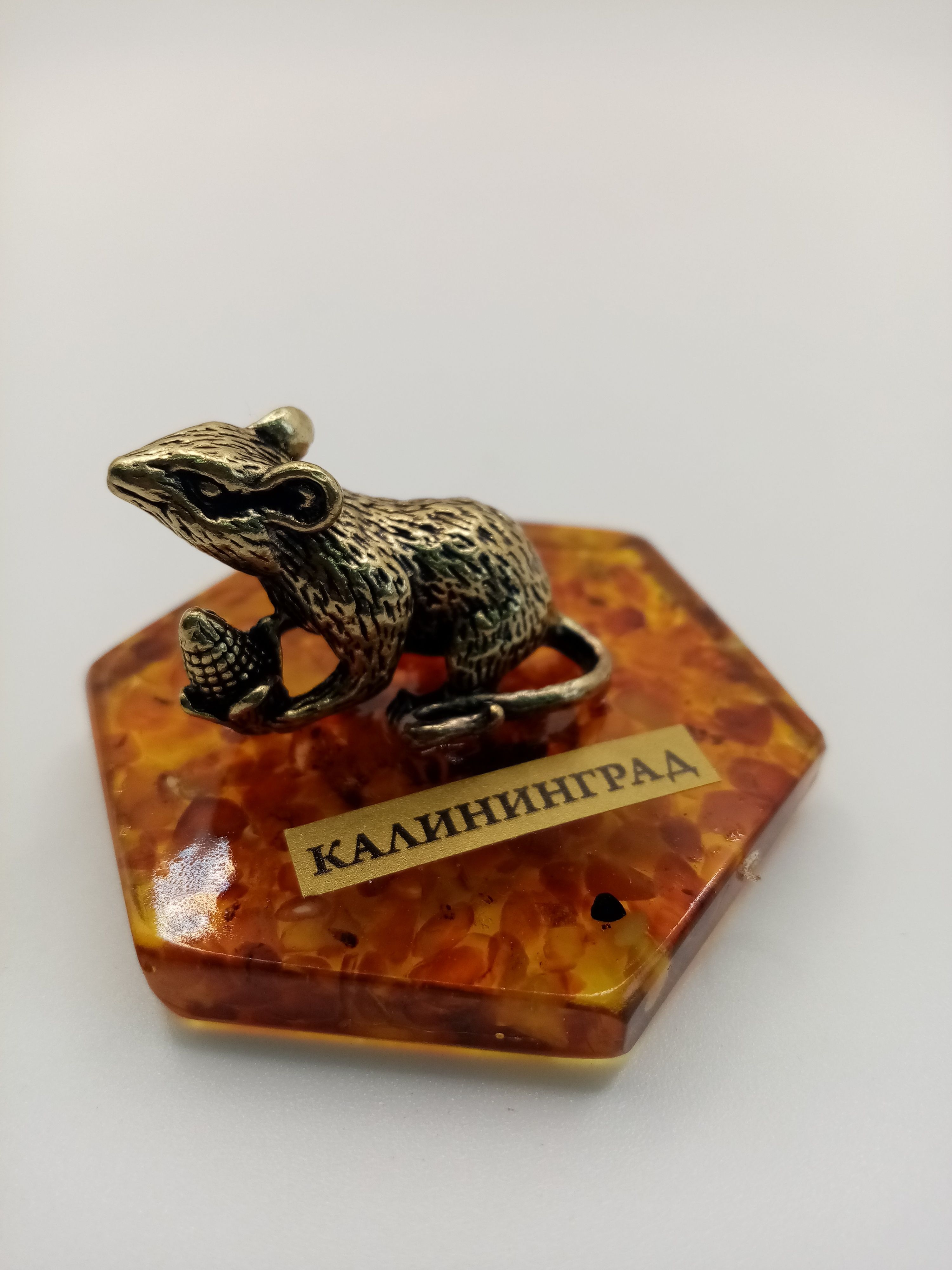 Латунь.Ювелирная смола,янтарь. Высота сувенира 3 см.,масса 26 г.