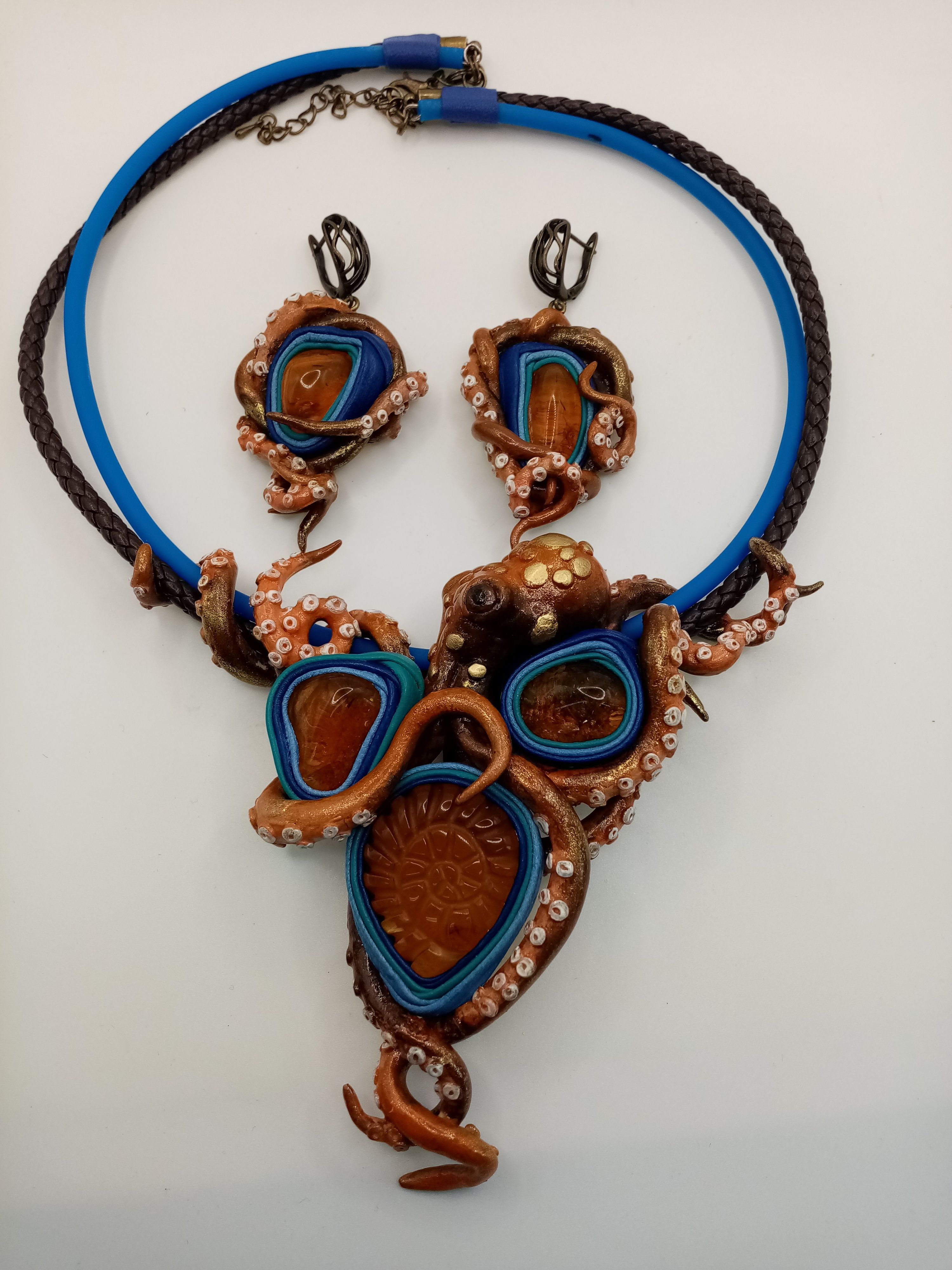Янтарь,полимерная глина,металлическая фурнитура с покрытием.