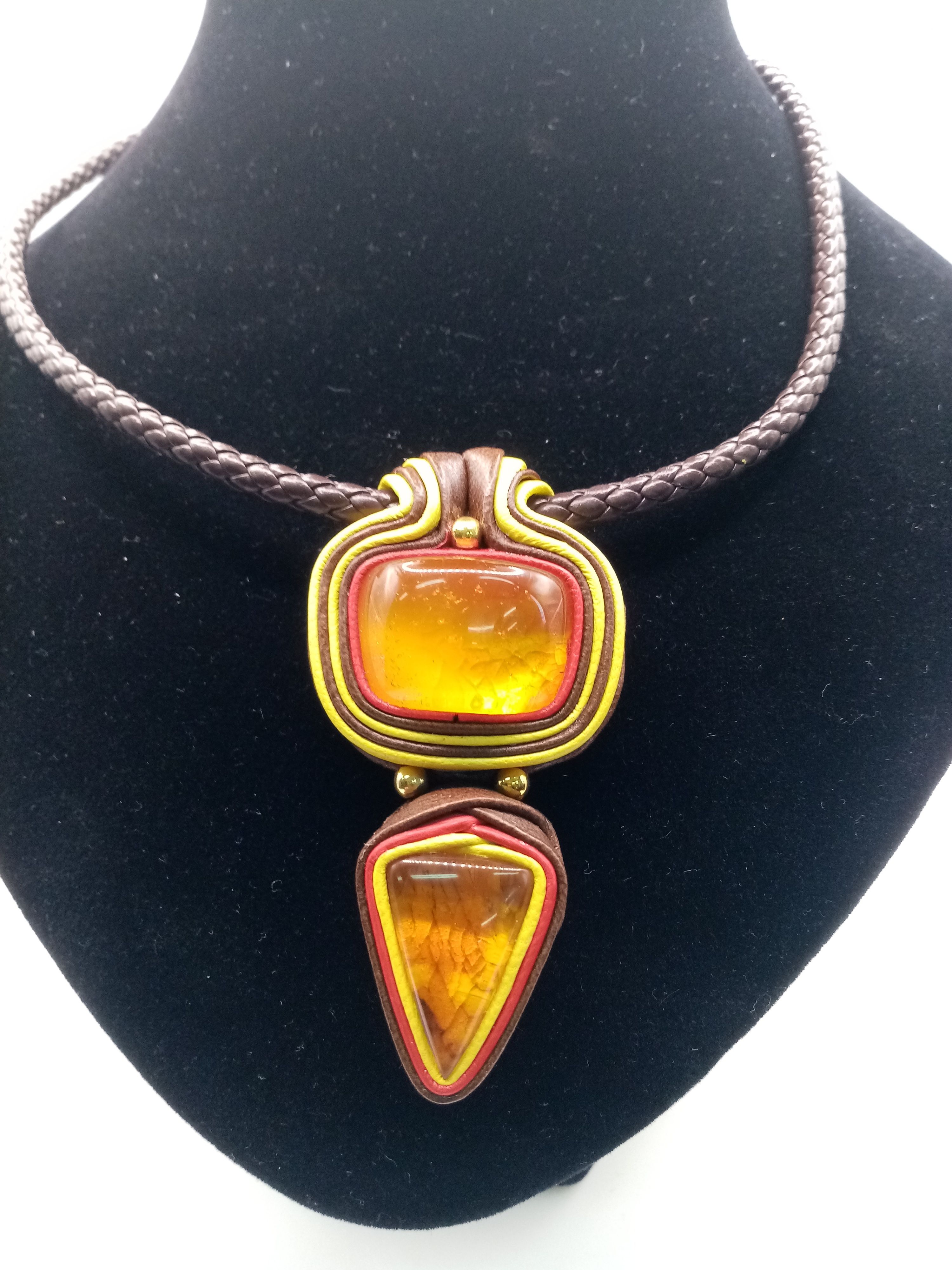 Натуральный янтарь,кожа.