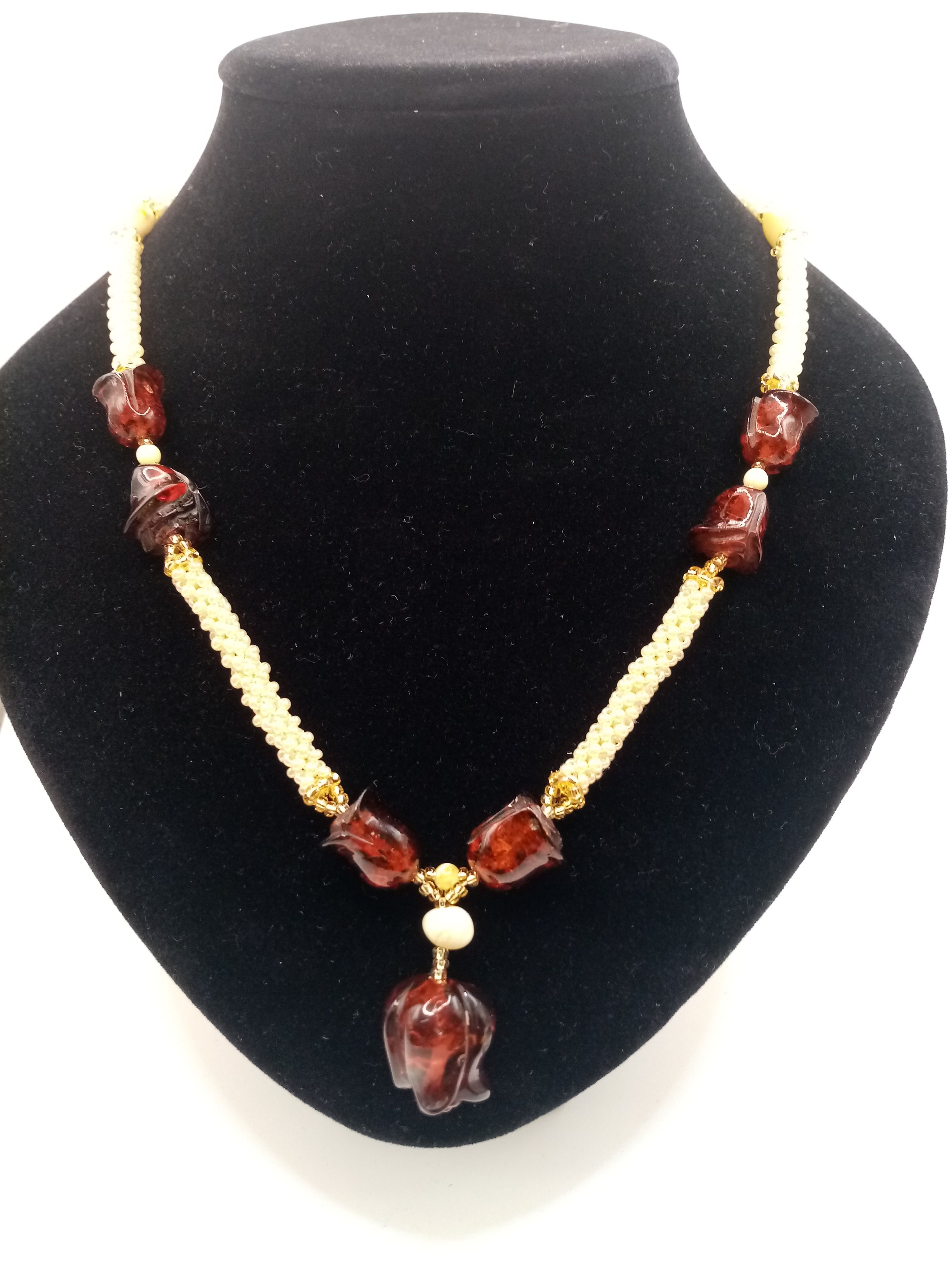 Натуральный янтарь,бисер.