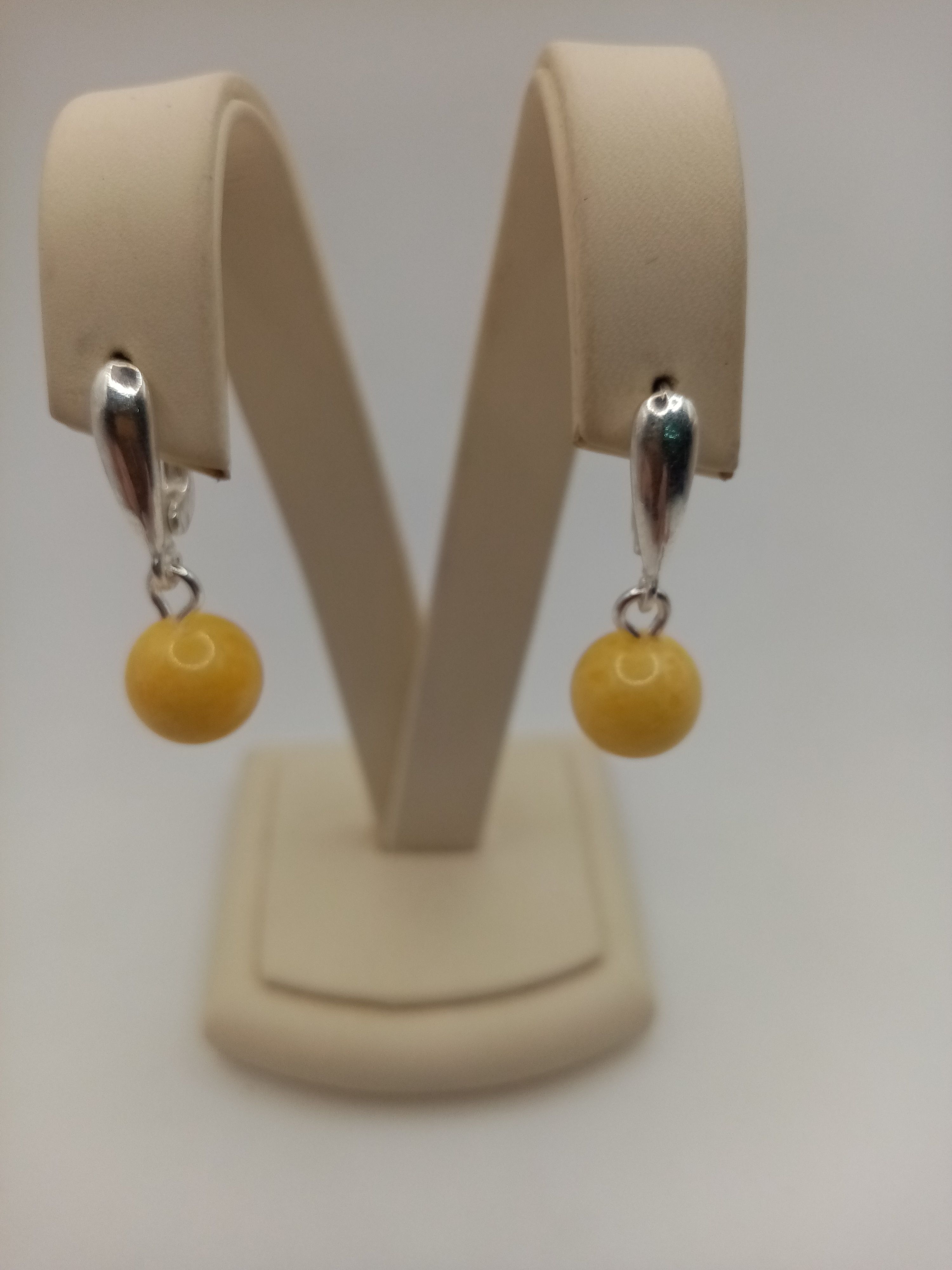 Серьги из посеребренного покрытия и белого янтаря.